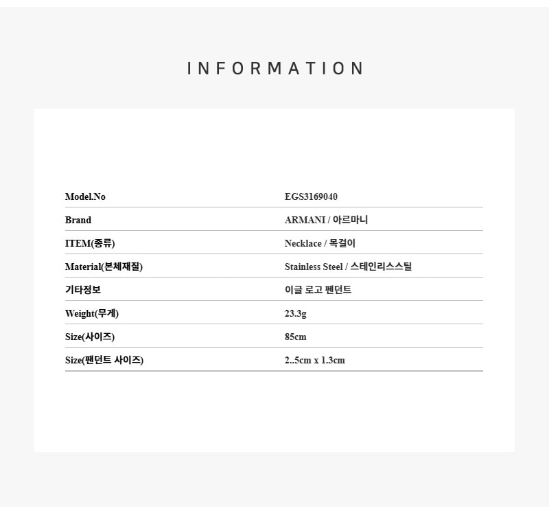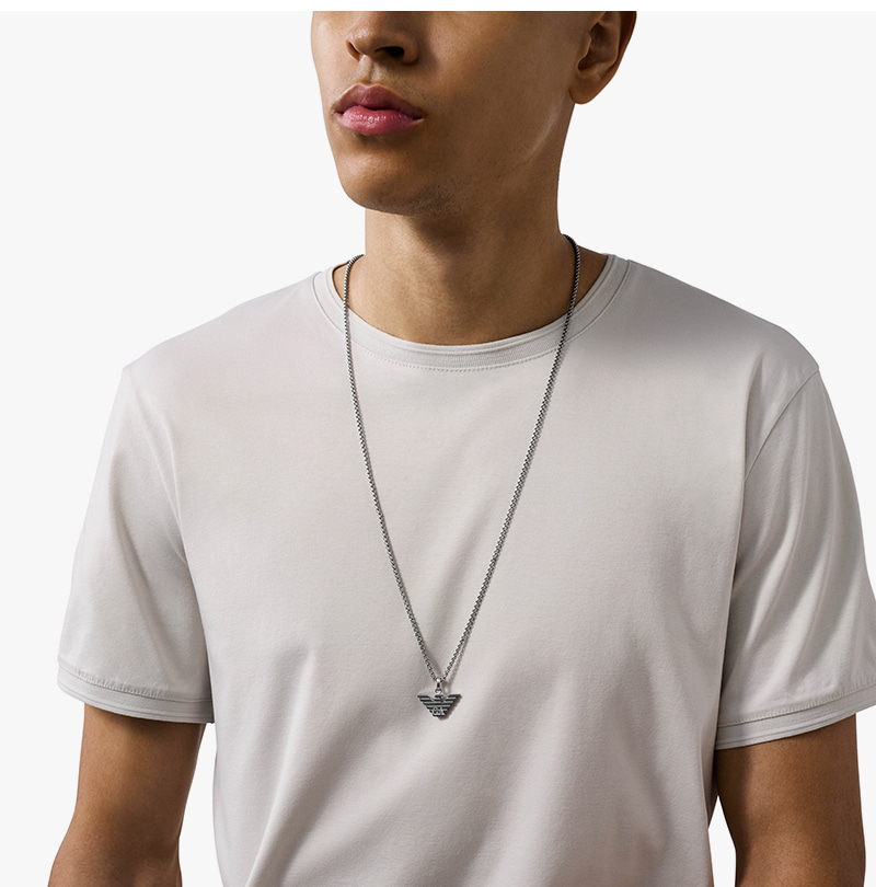엠포리오 아르마니 스테인리스 스틸 펜던트 네클리스 실버