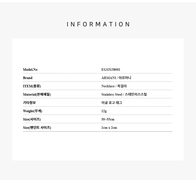 엠포리오 아르마니 스테인리스 스틸 도그 태그 네클리스 실버