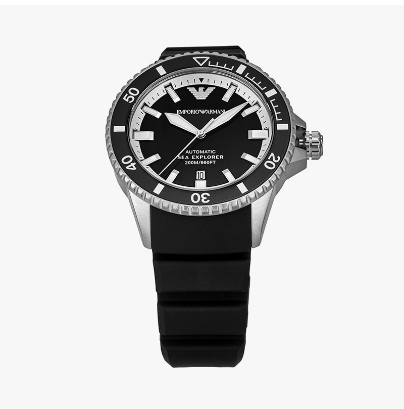 엠포리오 아르마니 쿼츠 씨 익스프로어 오토매틱 43mm 실리콘 블랙