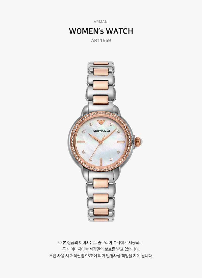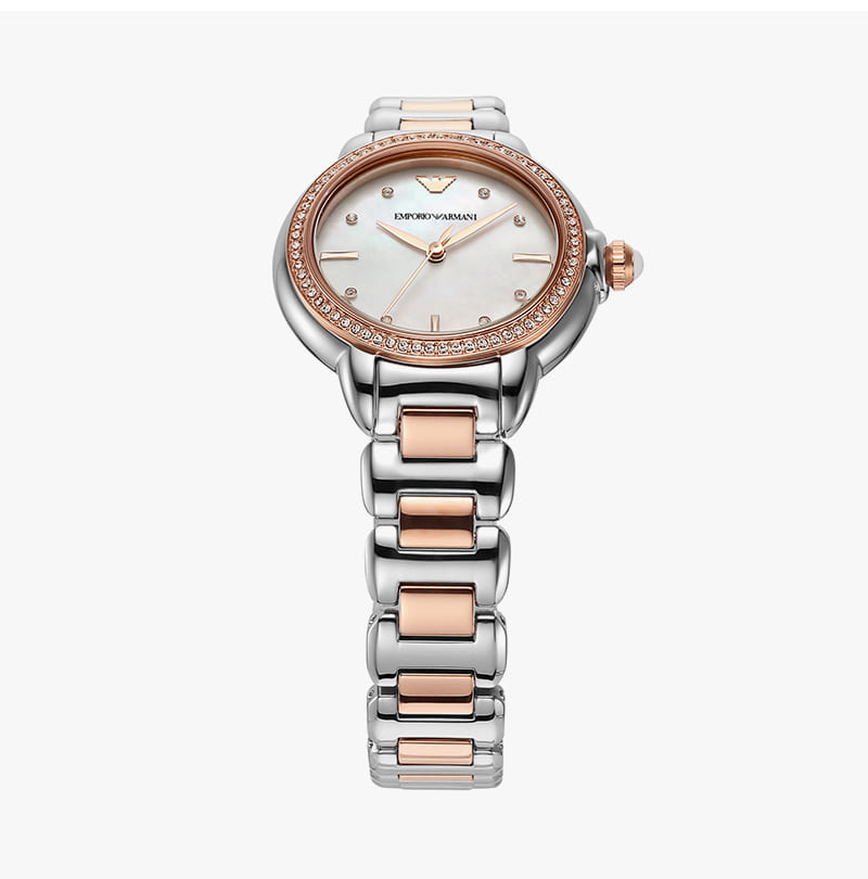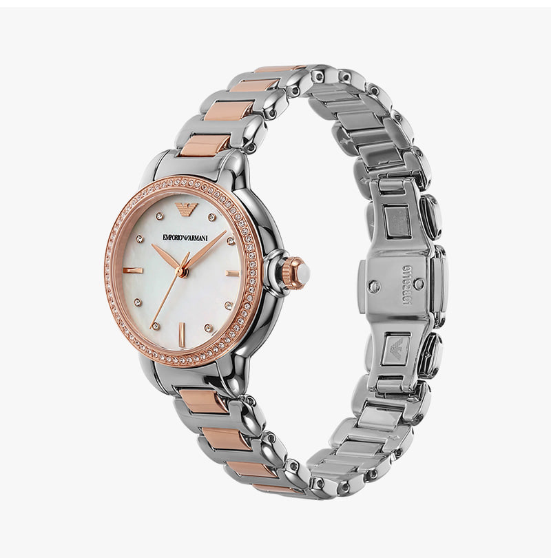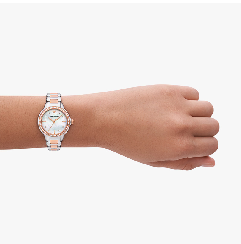 (W) 엠포리오 아르마니 쿼츠 쓰리핸드 32mm 마더 오브 펄 투톤 스테인리스 스틸 멀티컬러