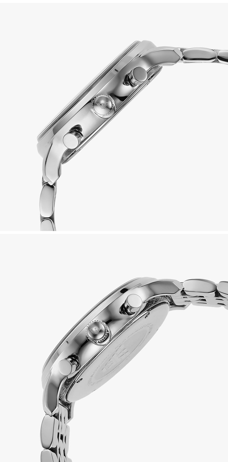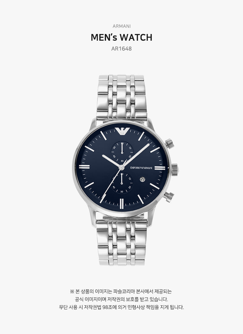 엠포리오 아르마니 투핸드 43mm 스테인리스 스틸 블루 실버