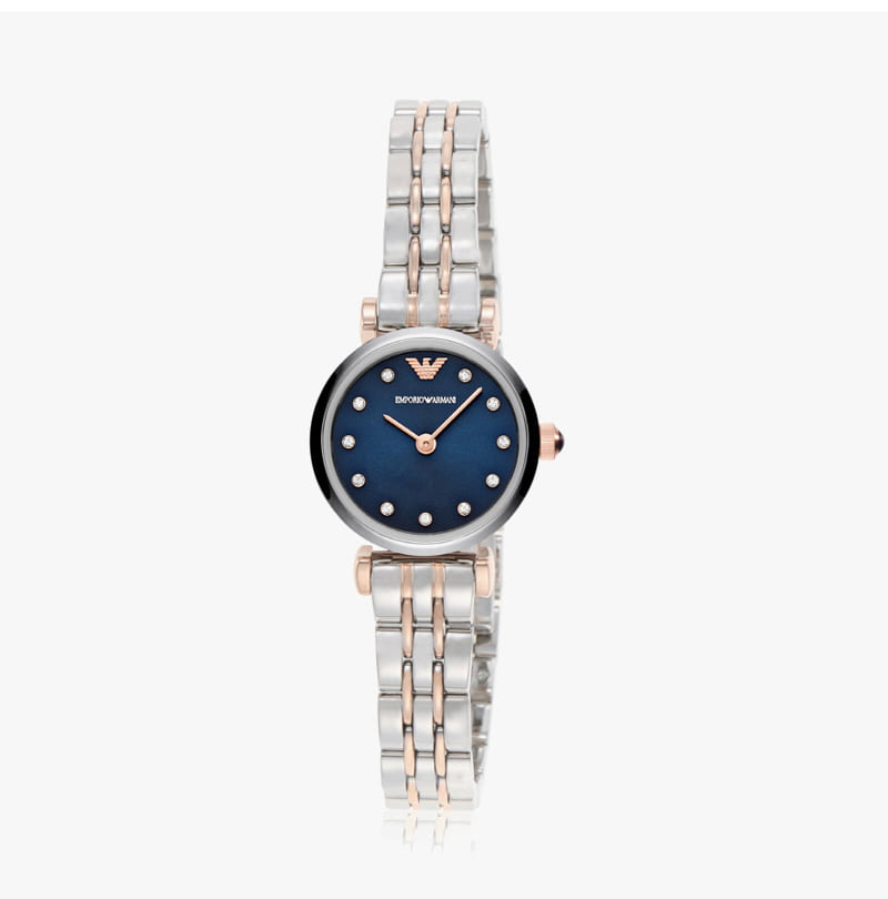 (W) Emporio Armani Two-Hand 22mm Stainless Steel Blue Silver Rose Gold