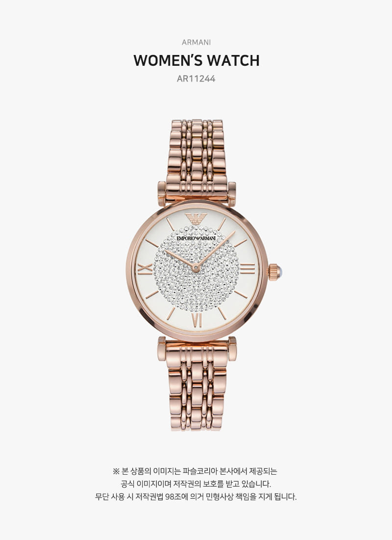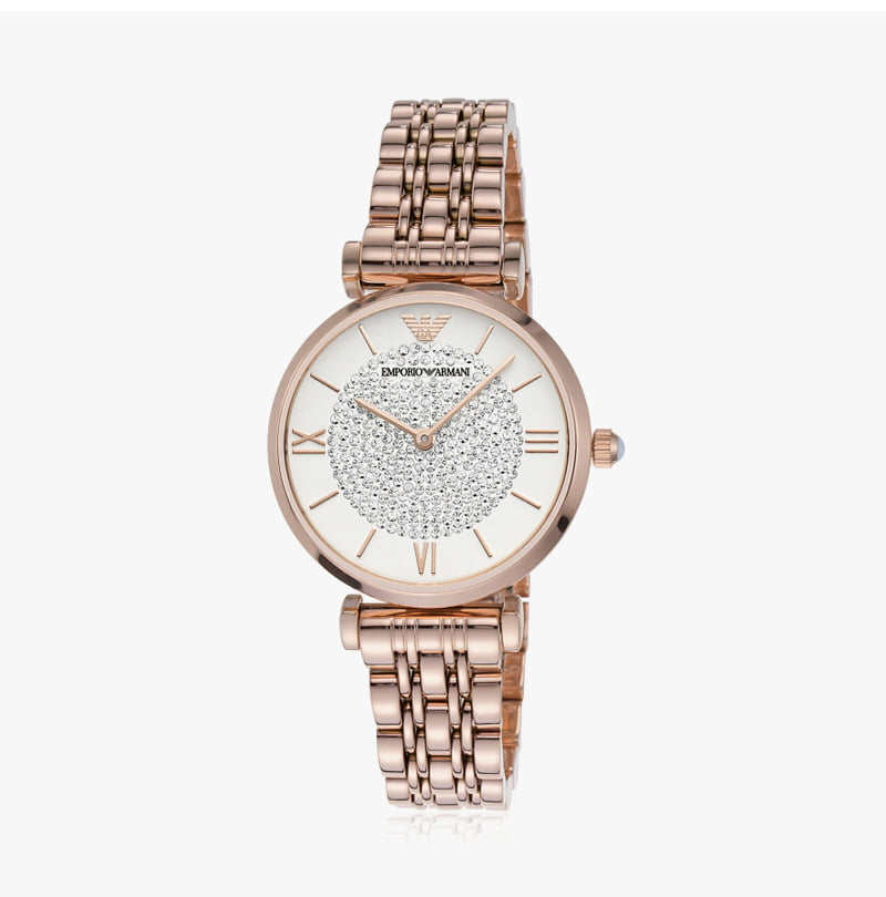 (W) 엠포리오 아르마니 투핸드 32mm 스테인리스 스틸 화이트 로즈 골드