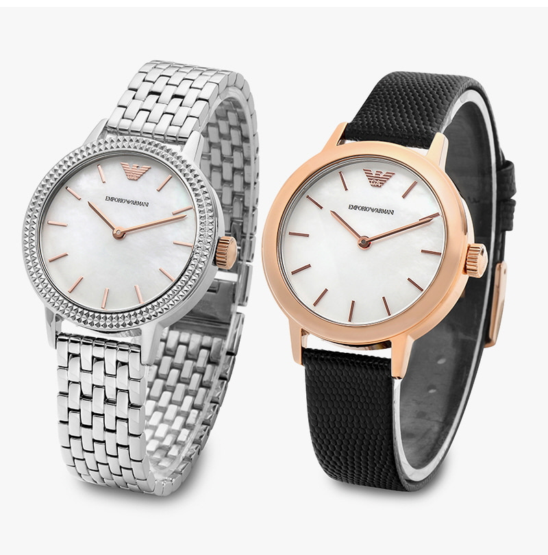 (W) 엠포리오 아르마니 쿼츠 32mm 스테인리스 스틸 마더 오브 펄 실버