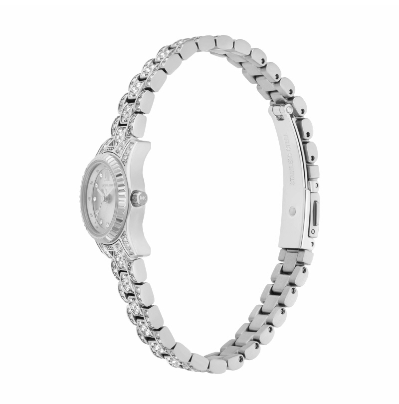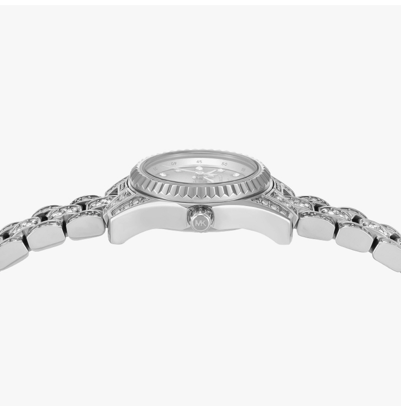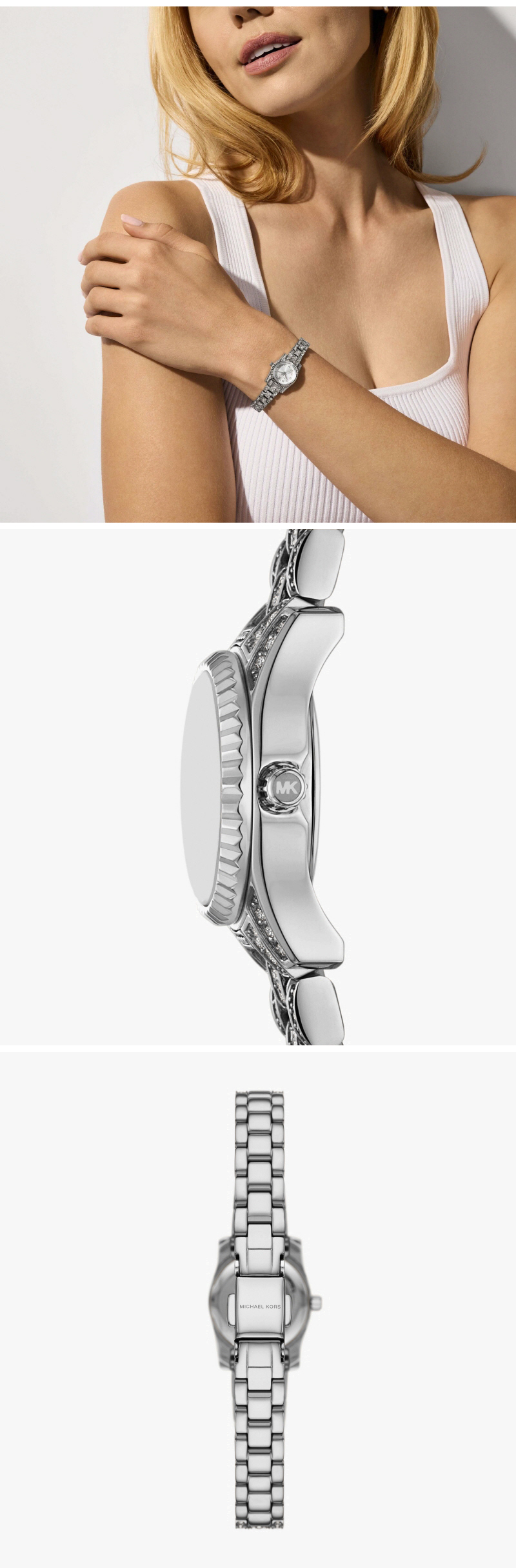 (W) Michael Kors Lexington Pave Three-Hand Stainless Steel Watch Silver
