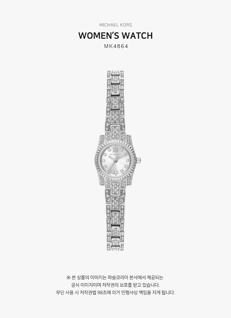(W) 마이클 코어스 렉싱턴 파베 쓰리핸드 스테인리스 스틸 시계 실버