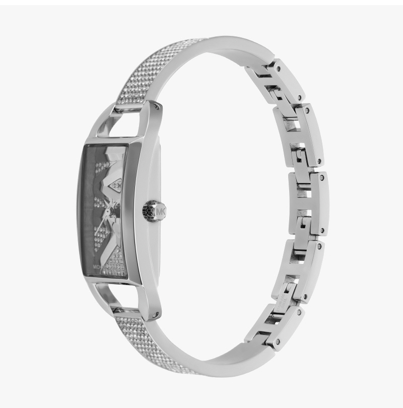 (W) 마이클 코어스 엠파이어 파베 뱅글 쓰리핸드 스테인리스 스틸 시계 실버