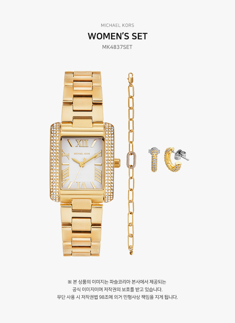 (W) 마이클 코어스 에머리 파베 시계 및 쥬얼리 기프트 세트 골드