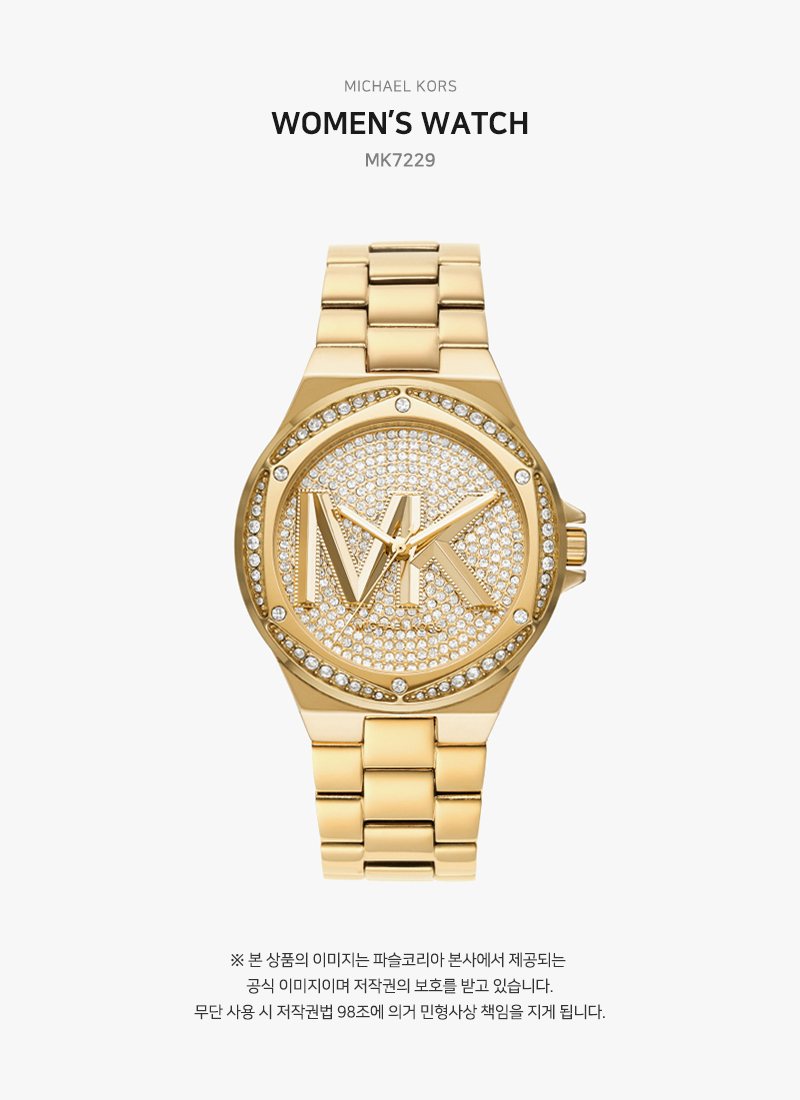 (W) 마이클 코어스 레녹스 파베 쓰리핸드 스테인리스 스틸 시계 골드