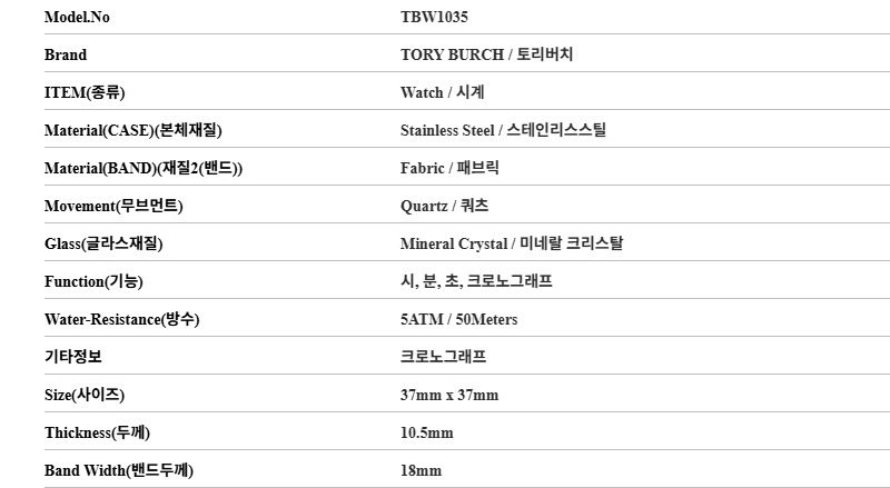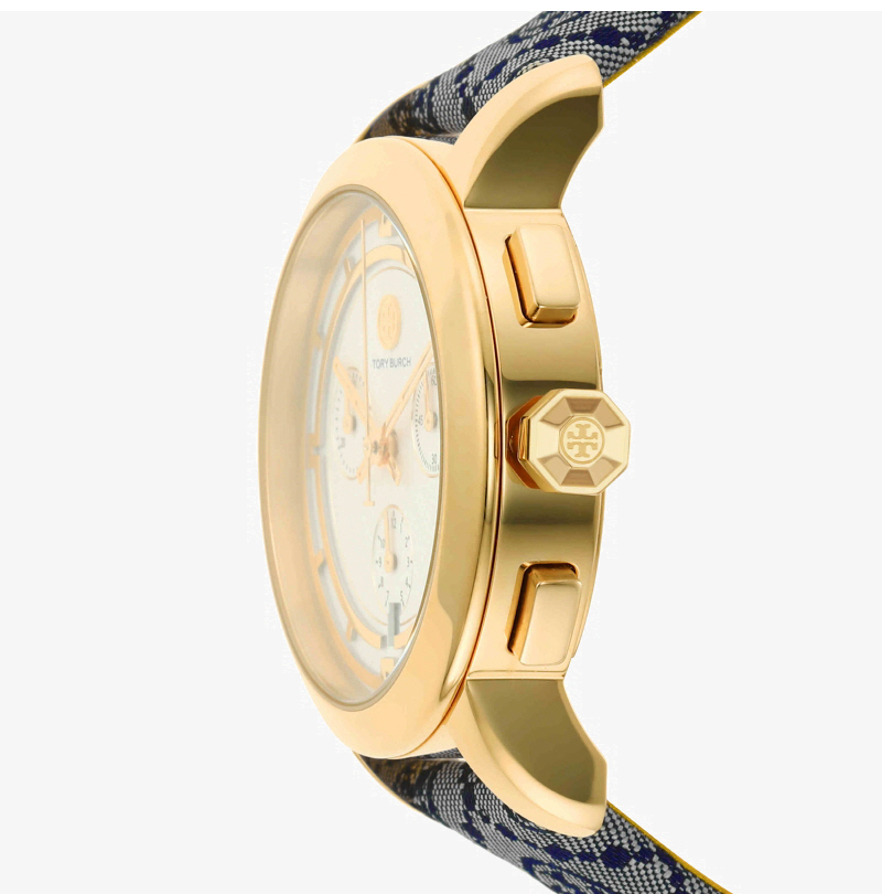 (W) 토리버치 토리 크로노그래프 패브릭 레더 스트랩 시계 블루