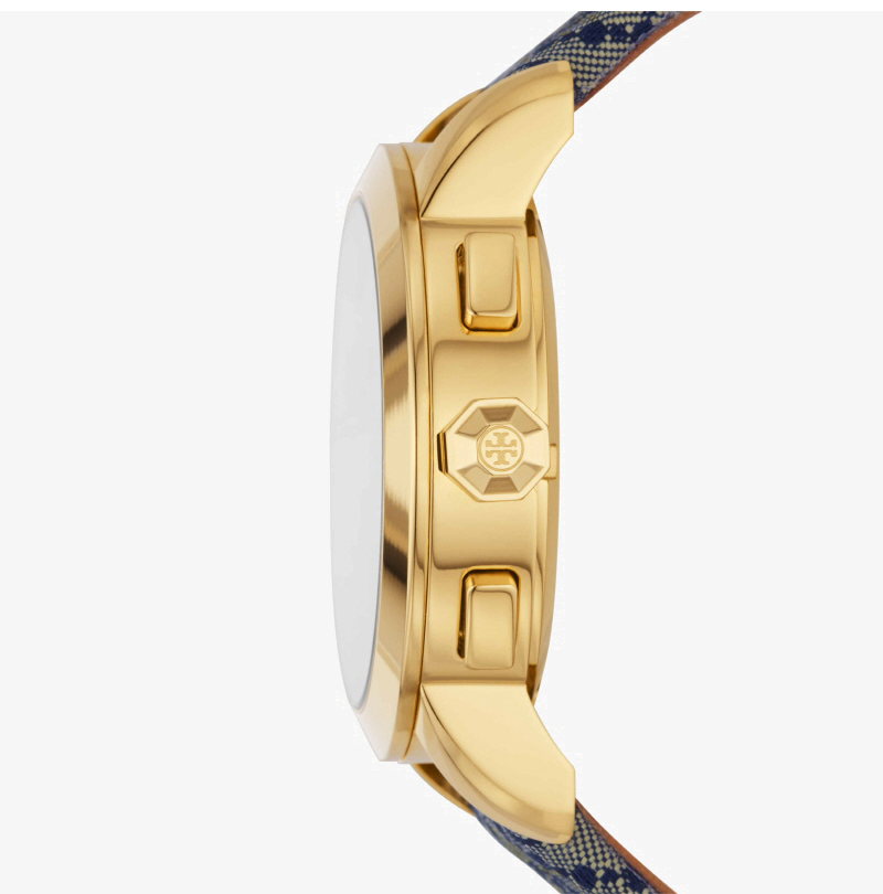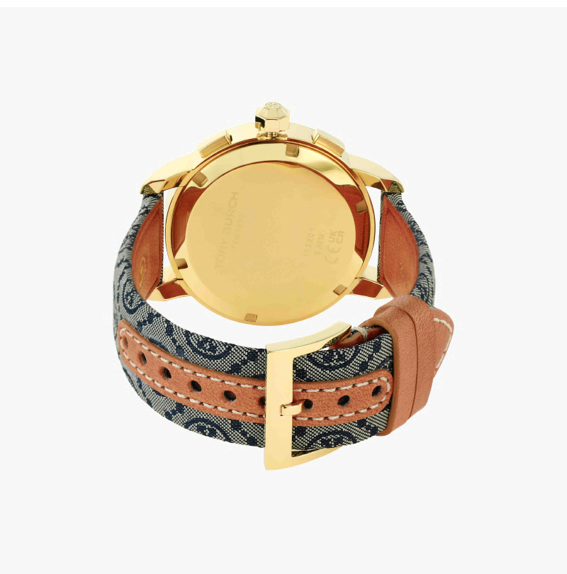 (W) Tory Burch Tory Chronograph Fabric Leather Strap Watch Blue