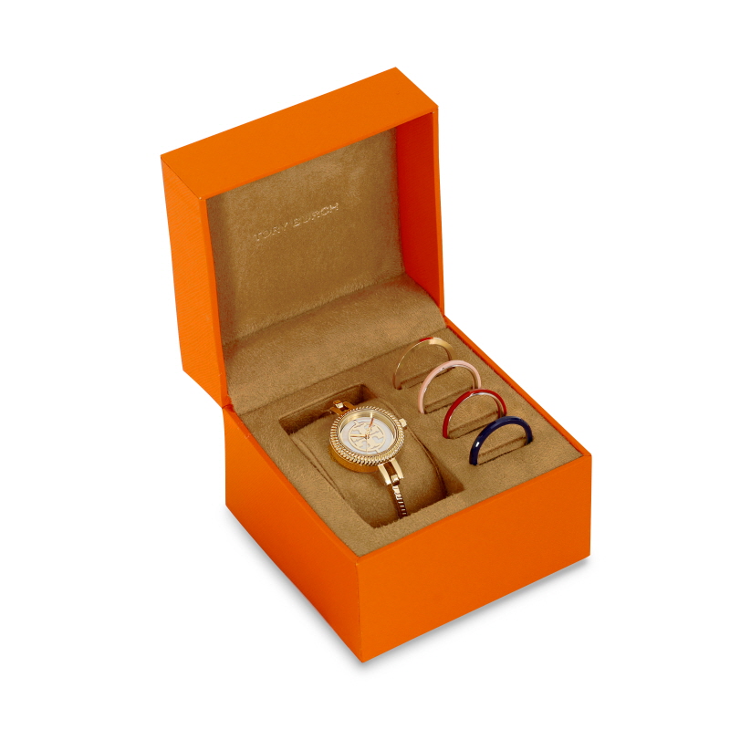 (W) Tory Burch Reva Bangle Watch Gift Set Gold Multi