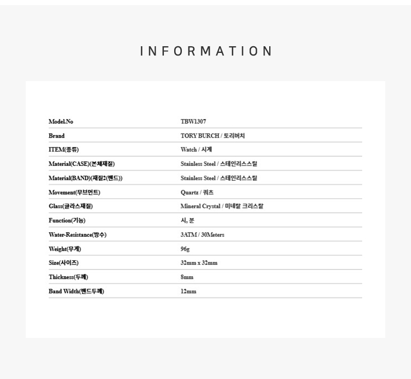 (W) 토리버치 콜린스 스테인리스 스틸 시계 로즈골드