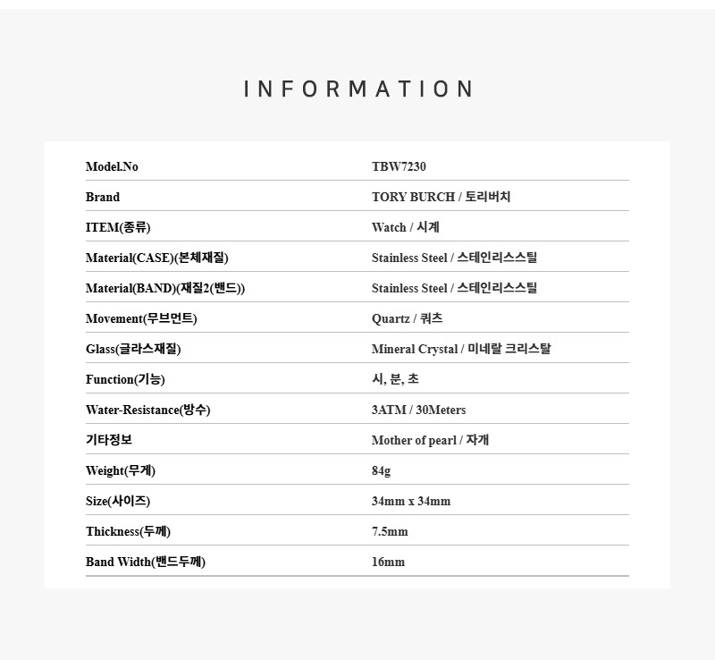 (W) Tory Burch Miller Stainless Steel Watch Gold Mop