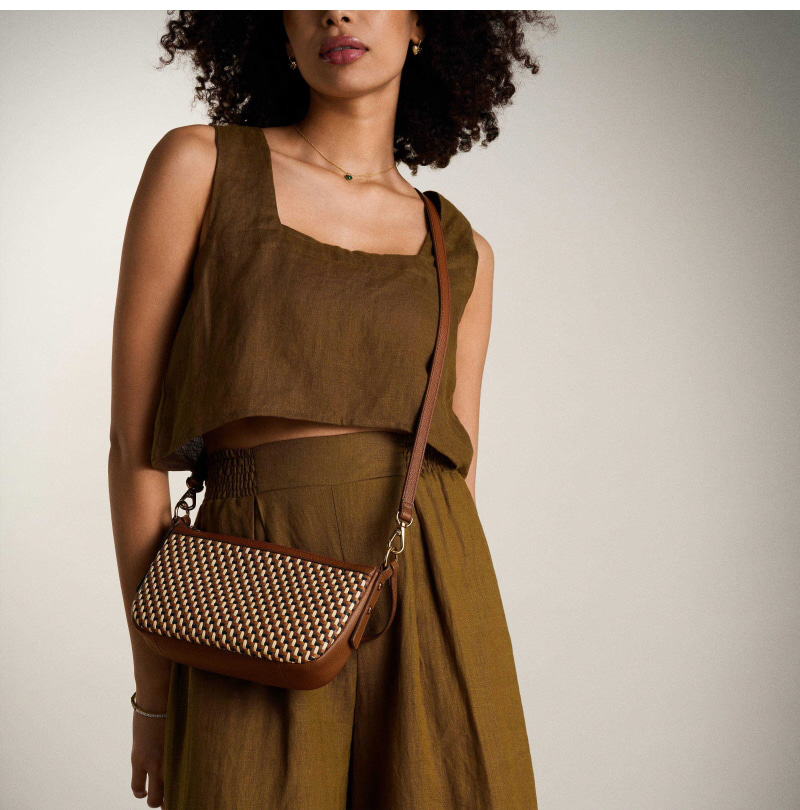 파슬 졸리 레더 스몰 크로스바디백 뉴트럴 우븐