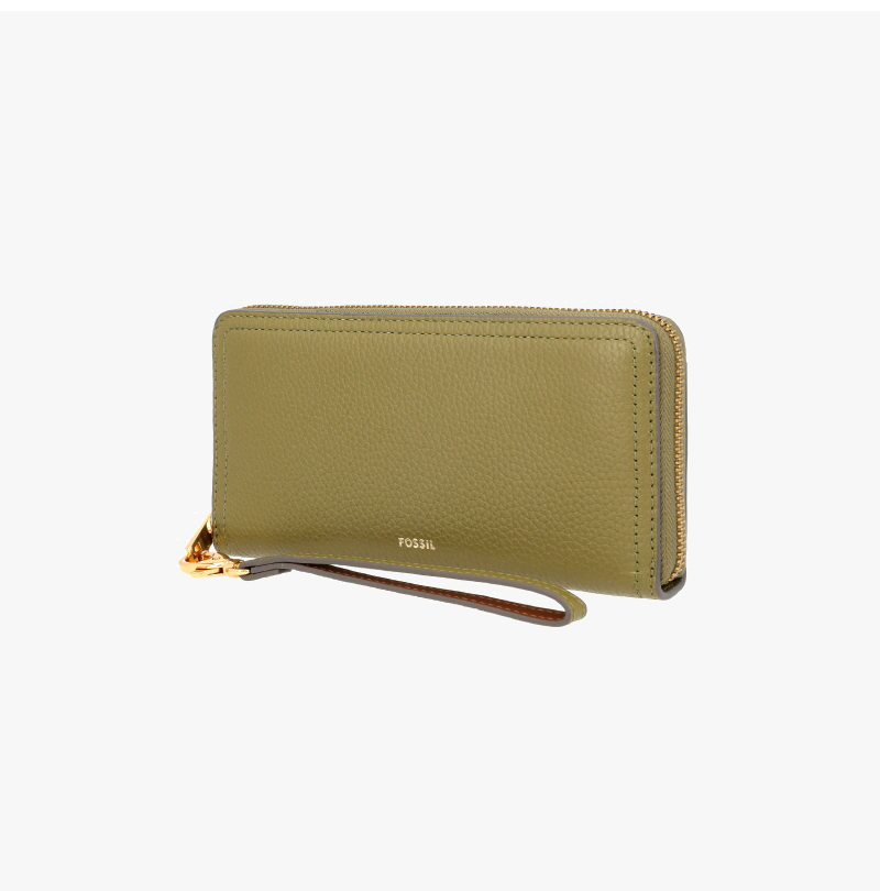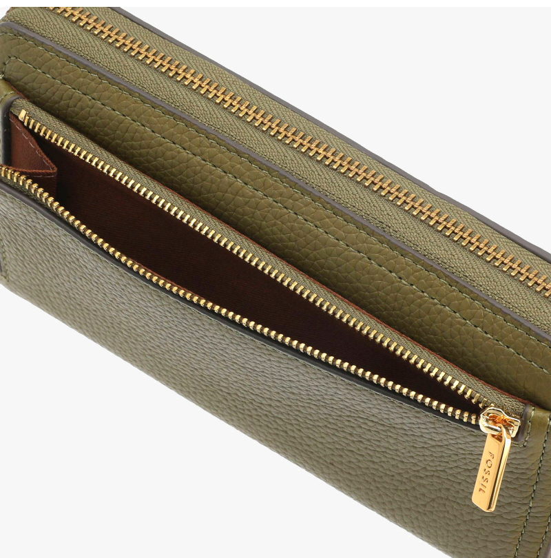 Fossil Logan RFID Zip Around Clutch Wallet Deset Olive