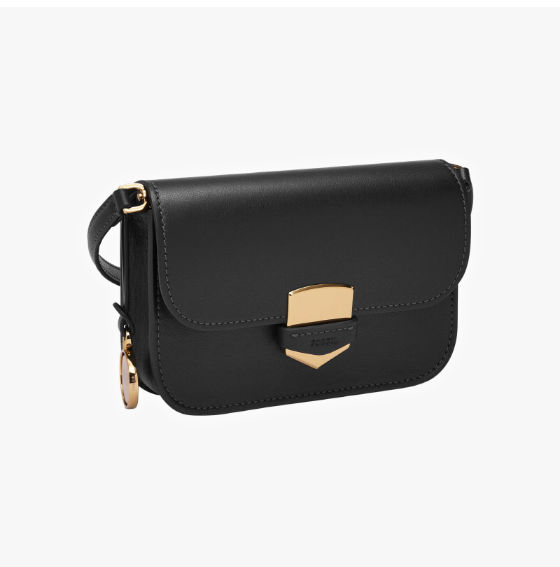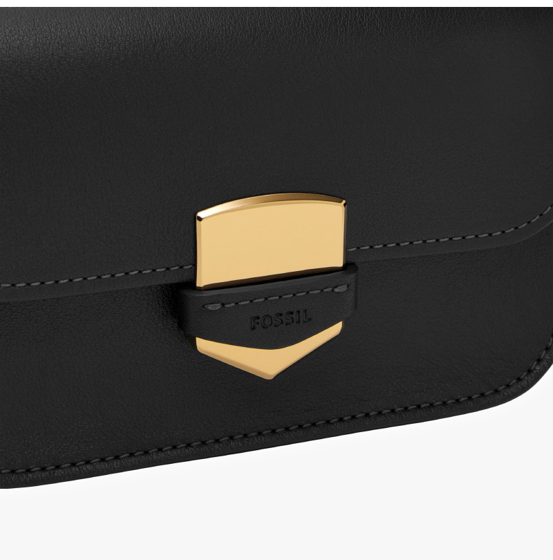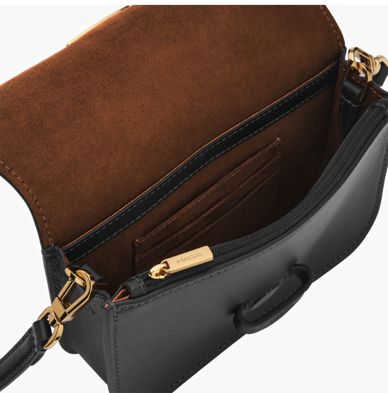 Fossil Lennox Leather Small Flap Crossbody Bag Black