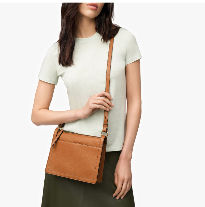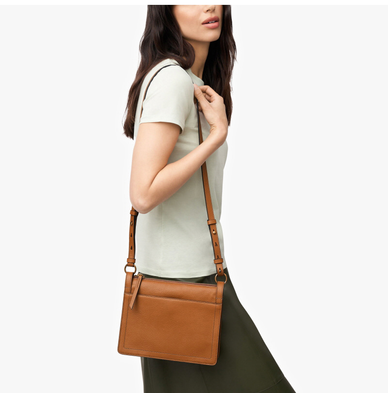 Fossil Taryn Leather Crossbody Bag Saddle