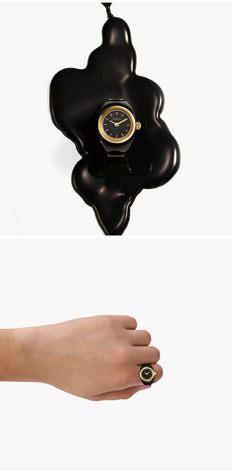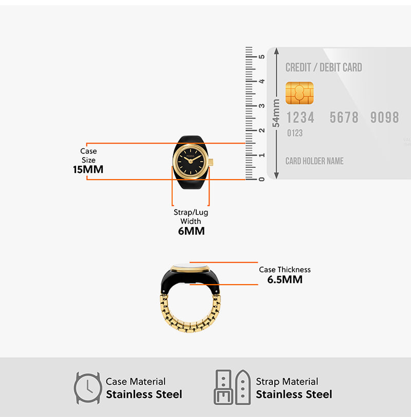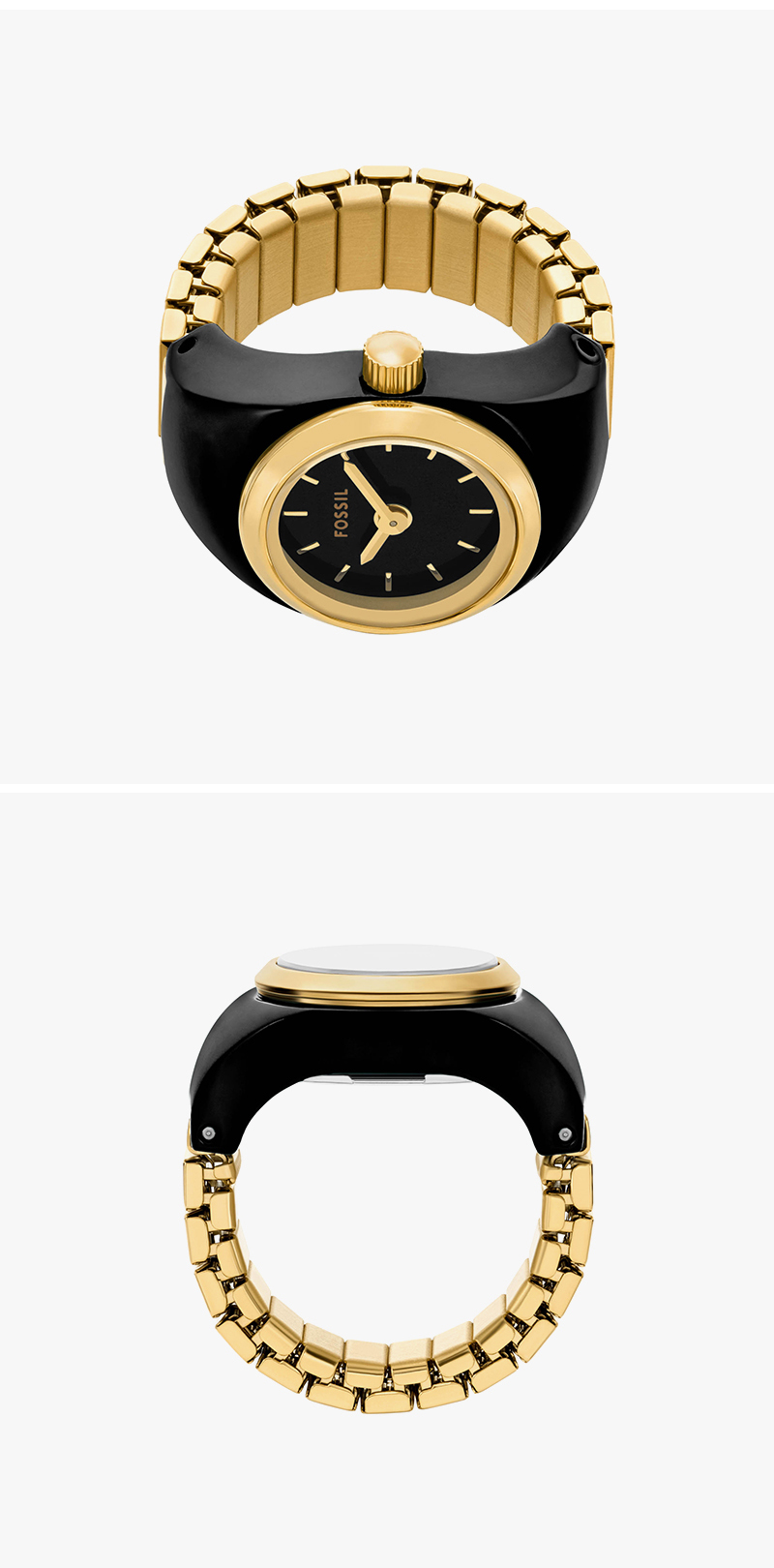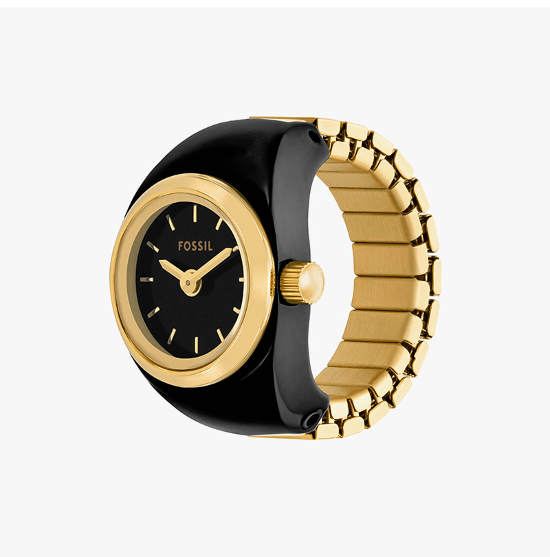 Fossil Watch Ring Two-Hand Gold-Tone Stainless Steel Gold Black
