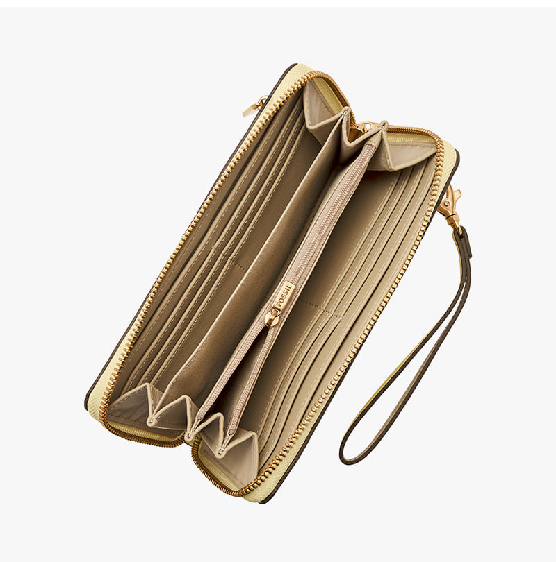 Fossil Logan Leather RFID Zip Around Clutch Wallet Daze