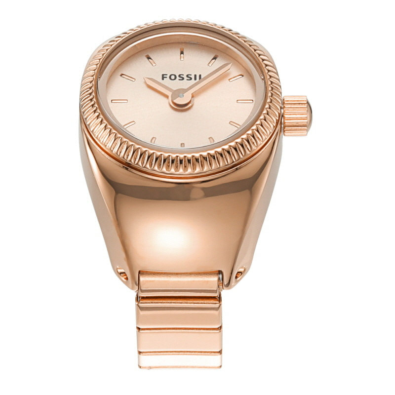 (W) Fossil Watch Ring Quartz Two-Hand 15mm Stainless Steel Rose Gold