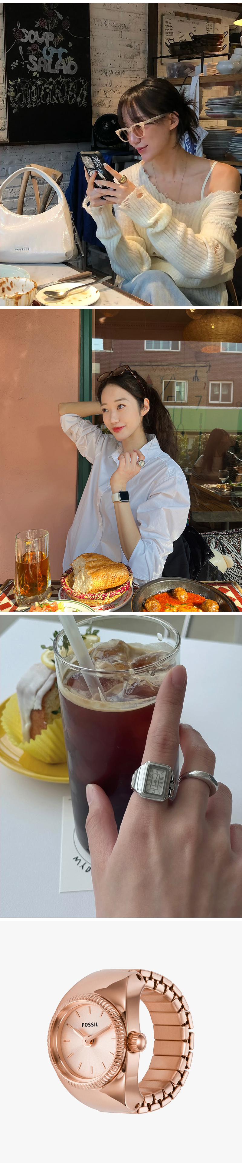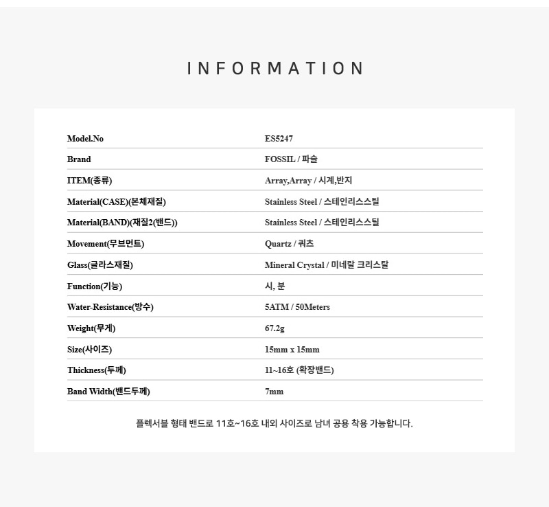 (W) 파슬 워치 링 쿼츠 투핸드 15mm 스테인리스 스틸 로즈 골드