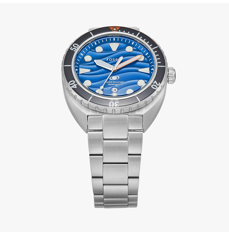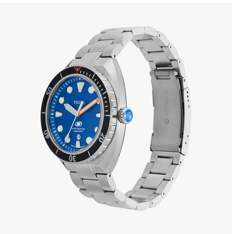 Fossil Breaker Three-Hand Date Stainless Steel Watch Silver Blue