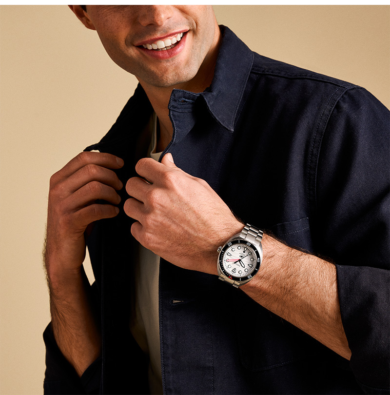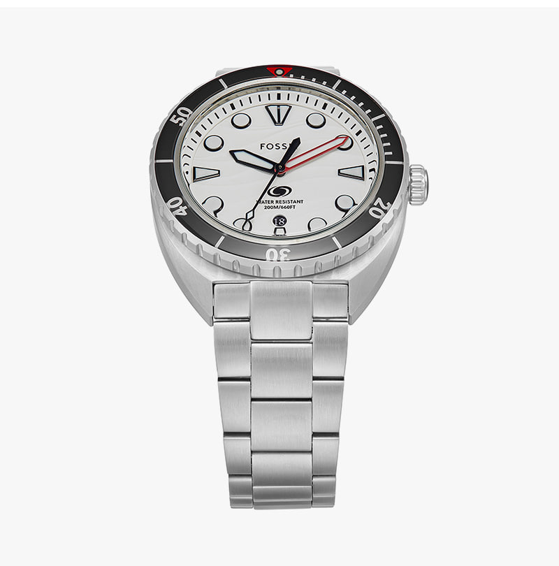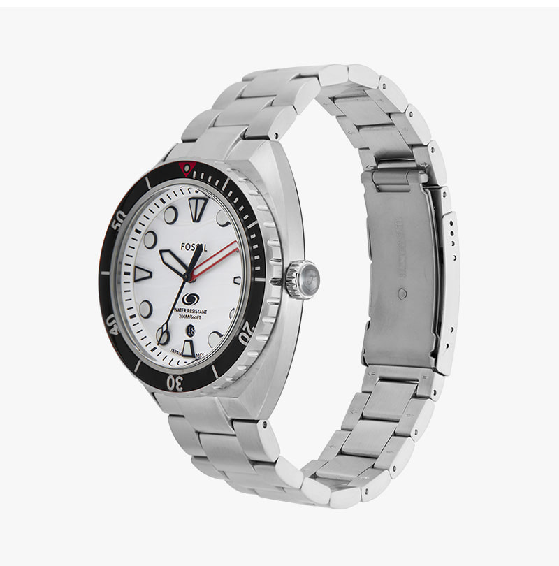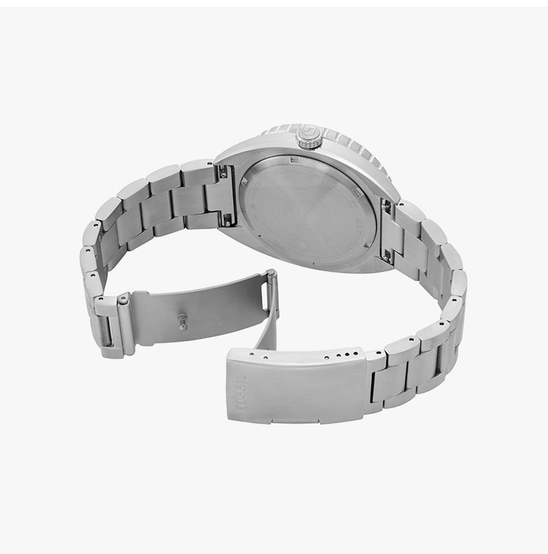 Fossil Breaker Three-Hand Date Stainless Steel Watch Silver White