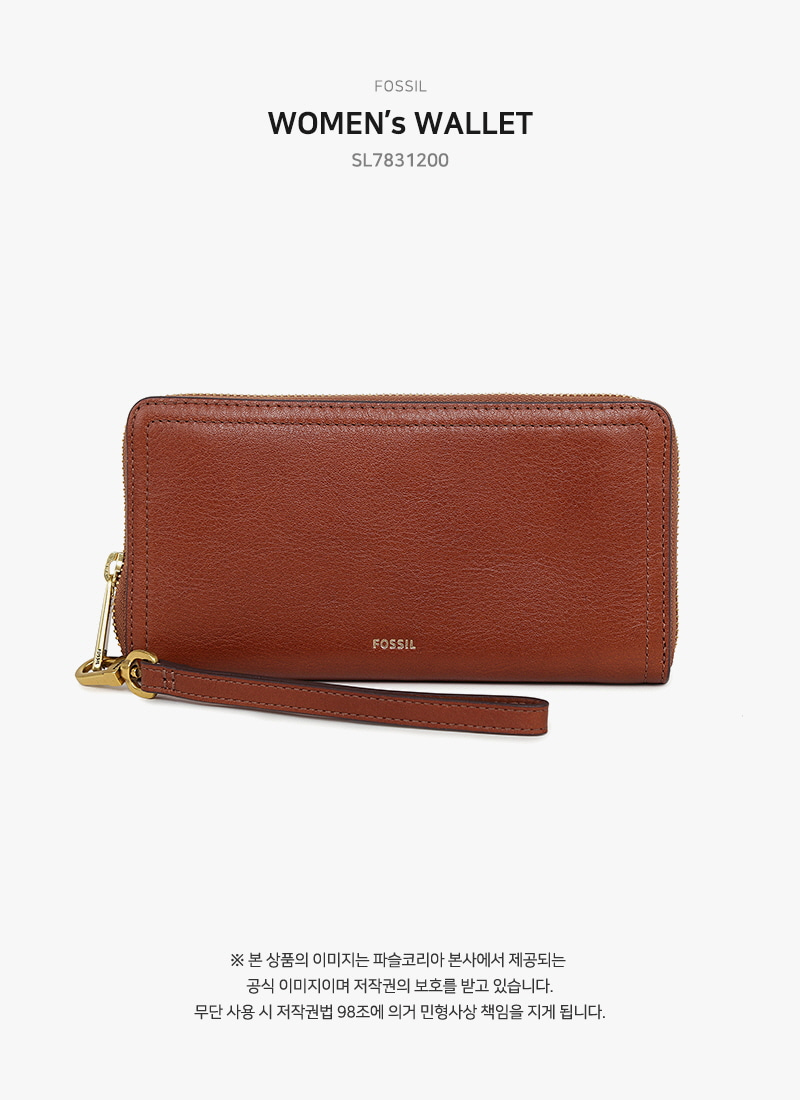 파슬 로건 레더 RFID 집 어라운드 클러치 지갑 브라운