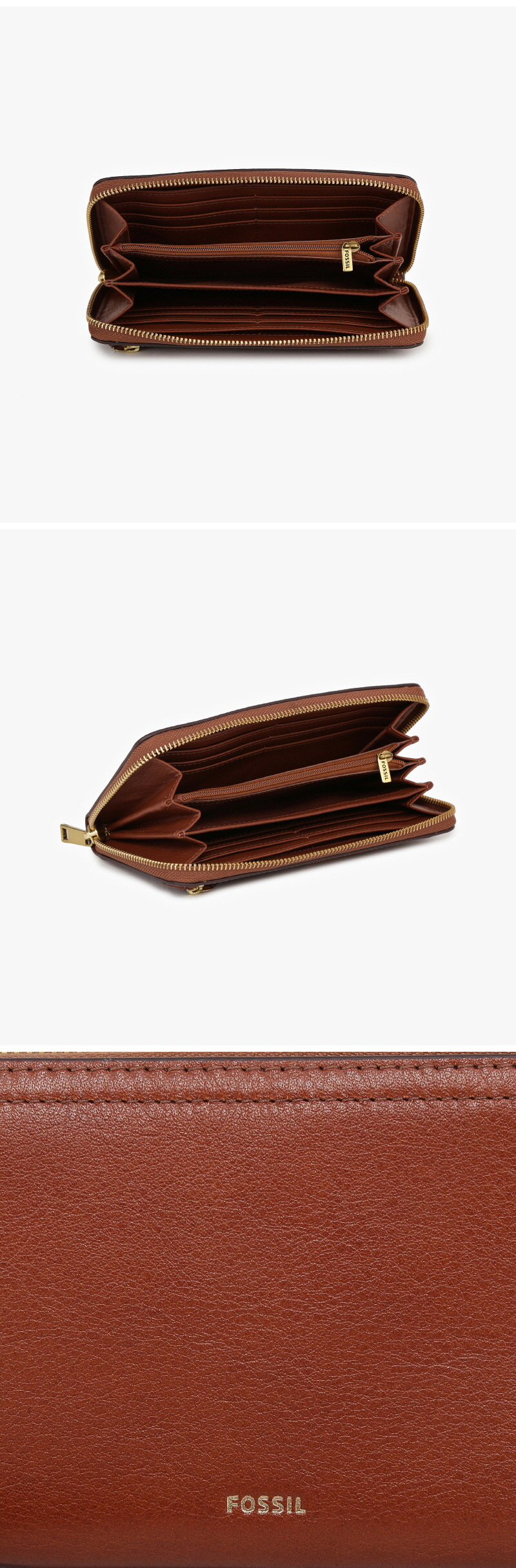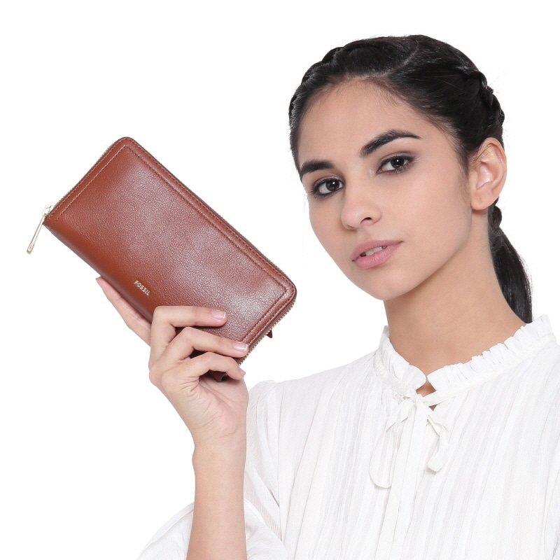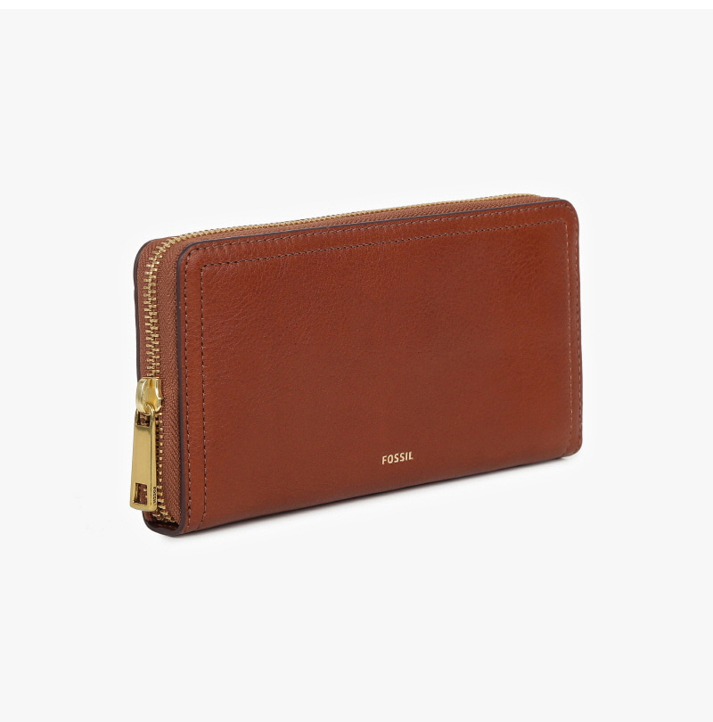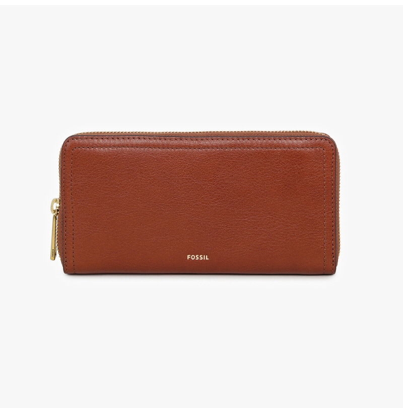 Fossil Logan Leather RFID Zip Around Clutch Wallet Brown
