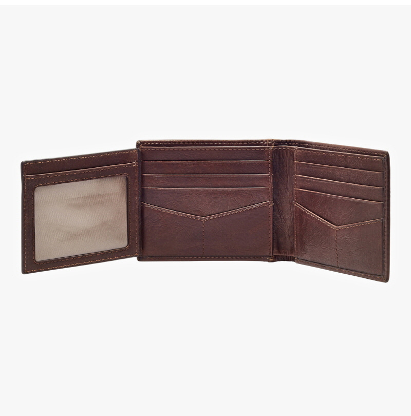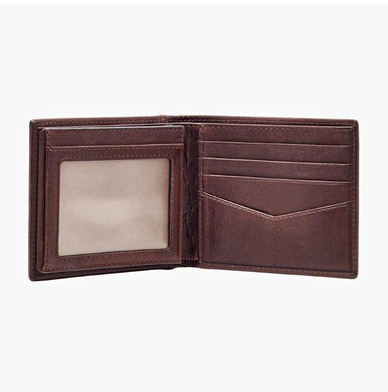 Fossil Ingram Leather RFID Bifold Wallet with Flip ID Brown