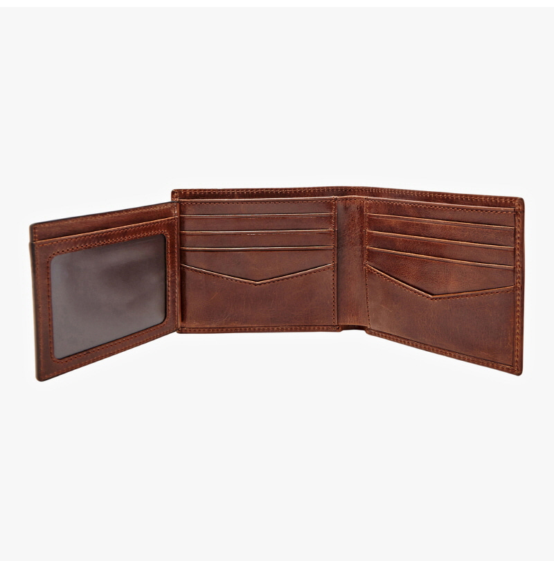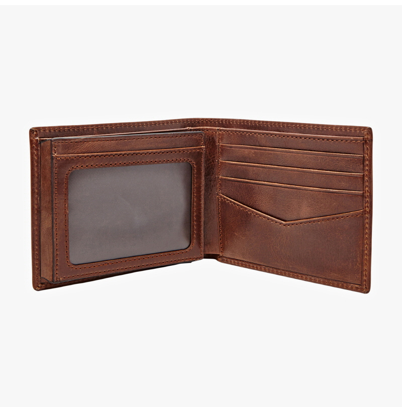 파슬 라이언 레더 RFID 플립 ID 반지갑 다크 브라운