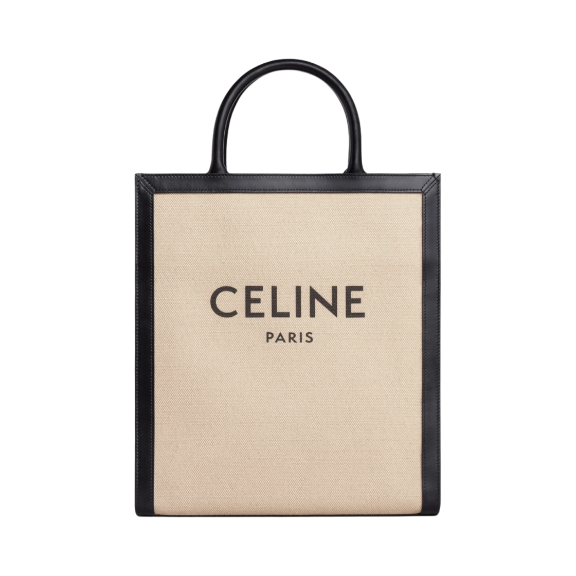 Celine Small Vertical Cabas Celine in Textile with Celine Print & Calfskin Vanilla Black