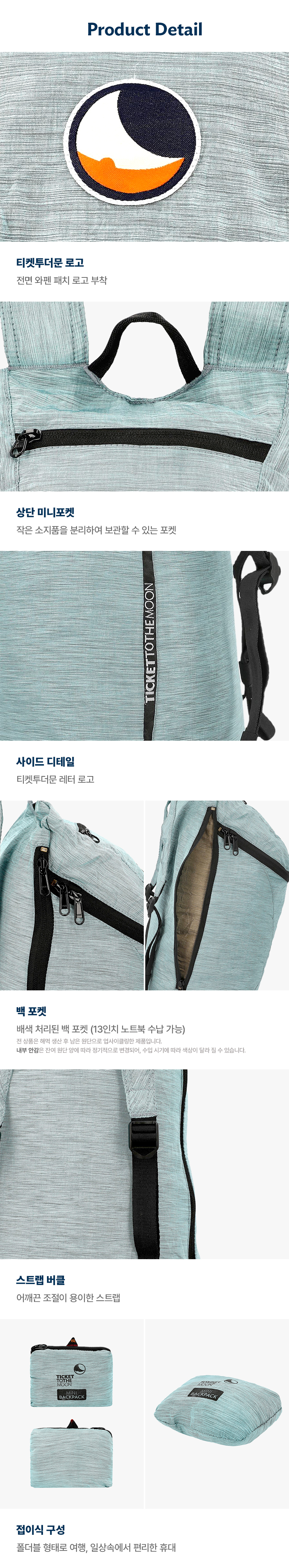 티켓투더문 미니 백팩 프리미엄 15L 아이스블루