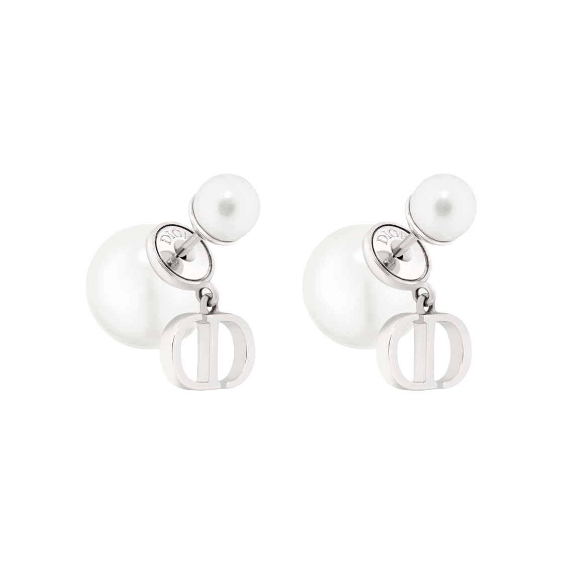 (W) Dior Tribales Earrings In Metal And Resin Pearls Silver Finish White