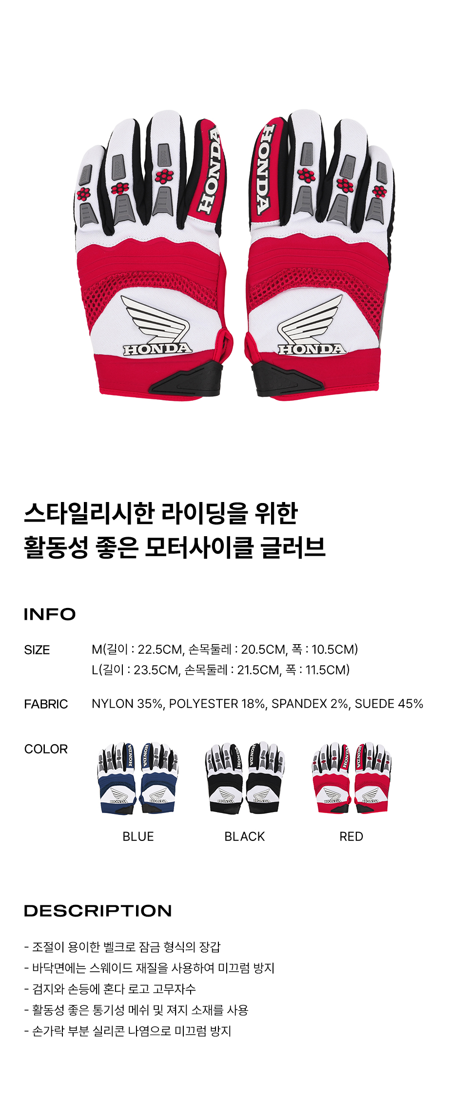 혼다 벨크로 모터사이클 글러브 레드