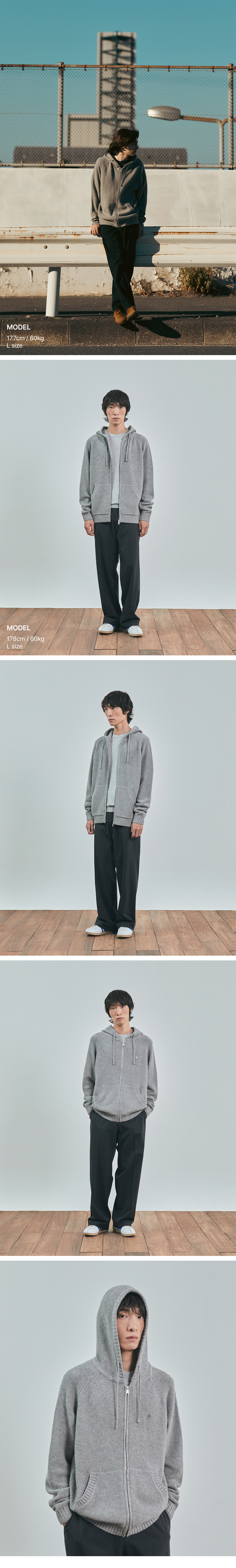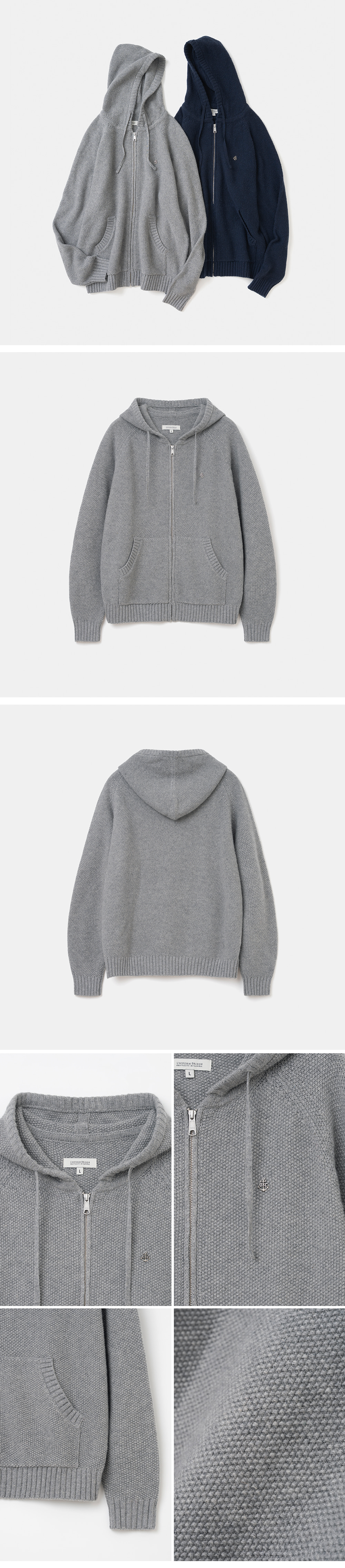 유니폼브릿지 집업 후드 니트 멜란지 그레이