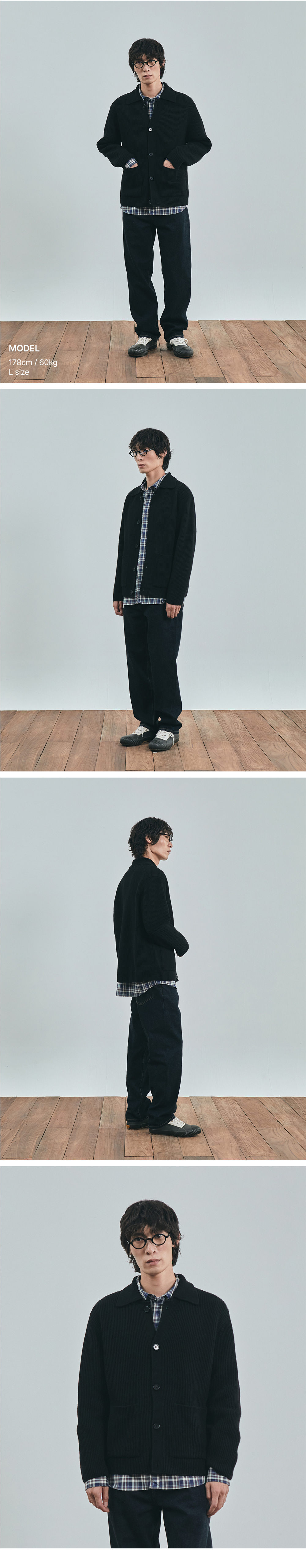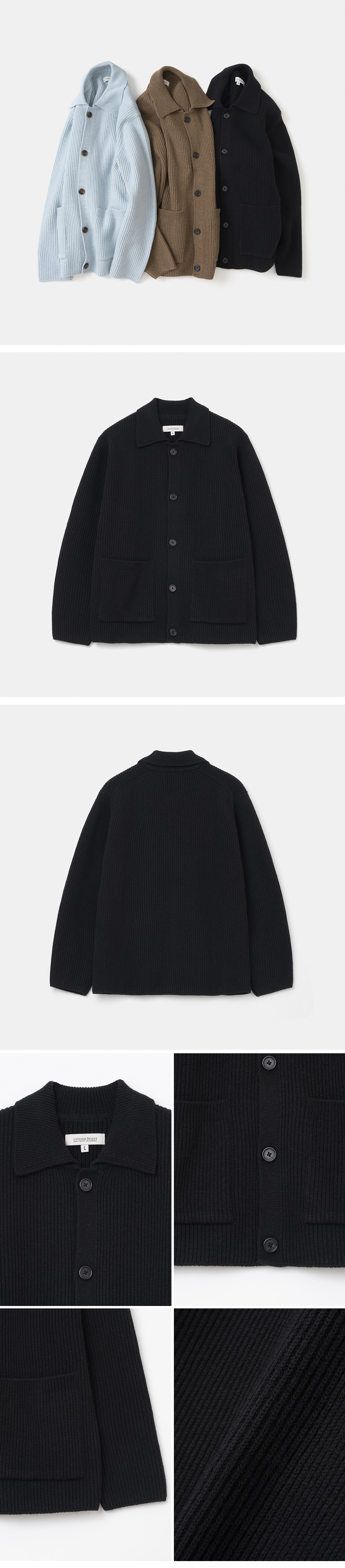 유니폼브릿지 포켓 칼라 니트 가디건 블랙