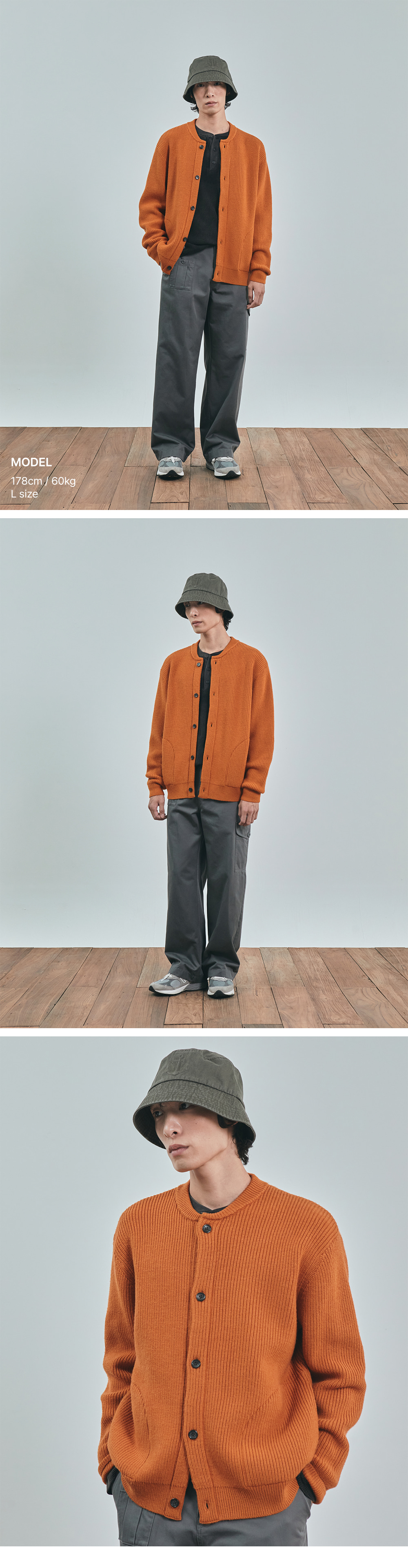 유니폼브릿지 피셔맨 울 니트 가디건 오렌지