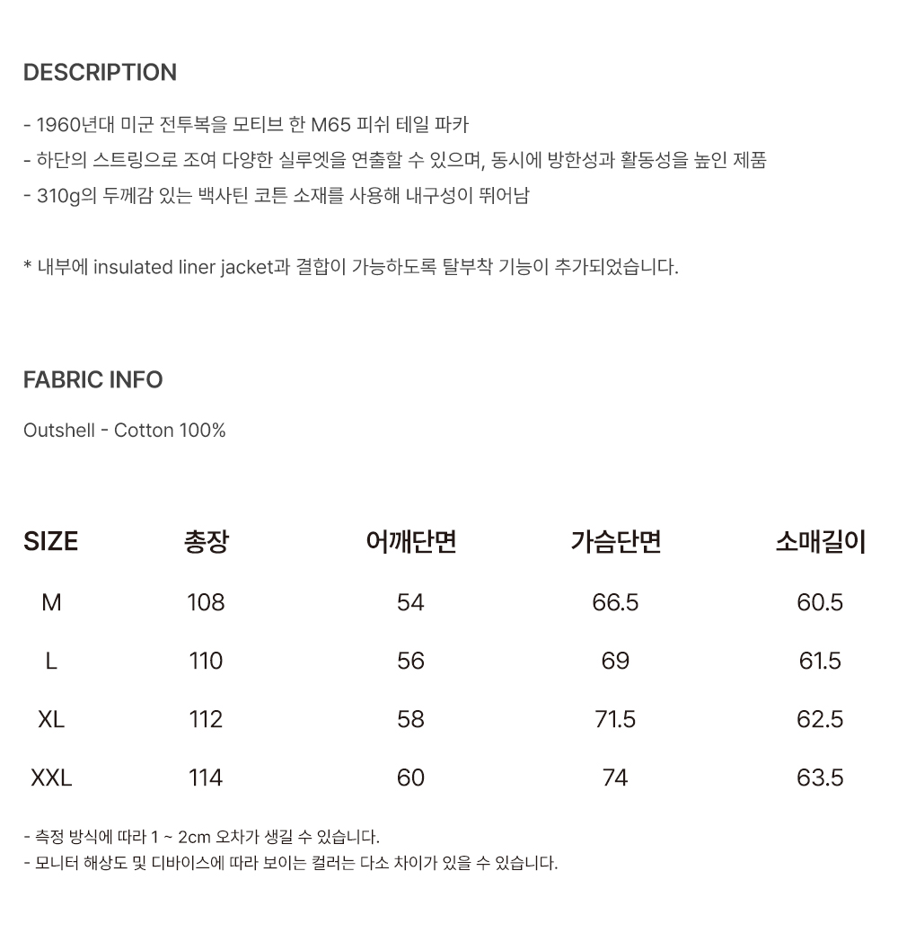 유니폼브릿지 M-65 피시테일 파카 그레이시 올리브
