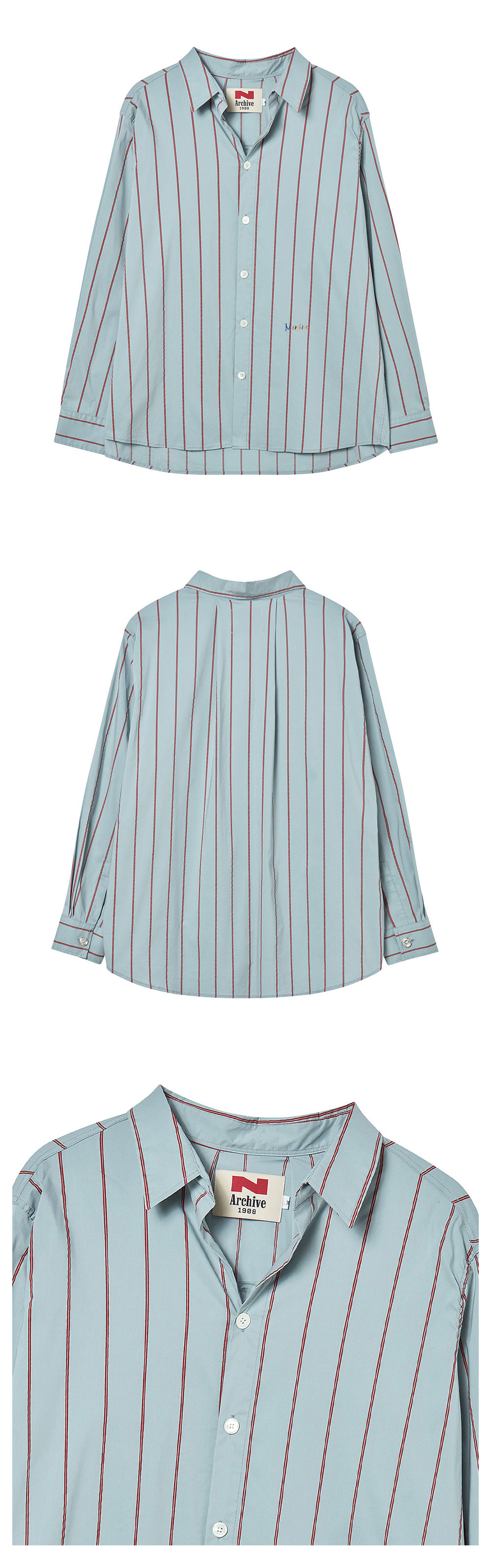 엔 아카이브 럭스 페브릭 스트라이프 코튼 셔츠 블루
