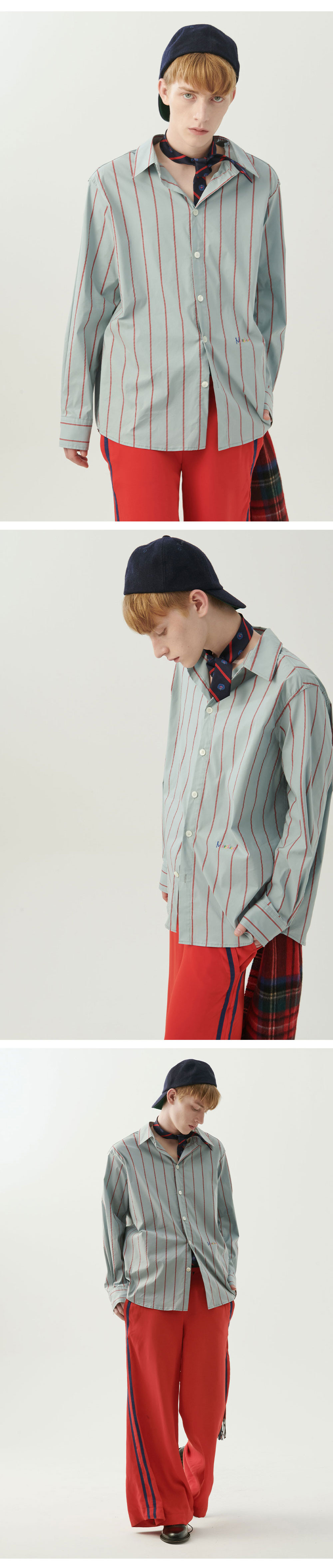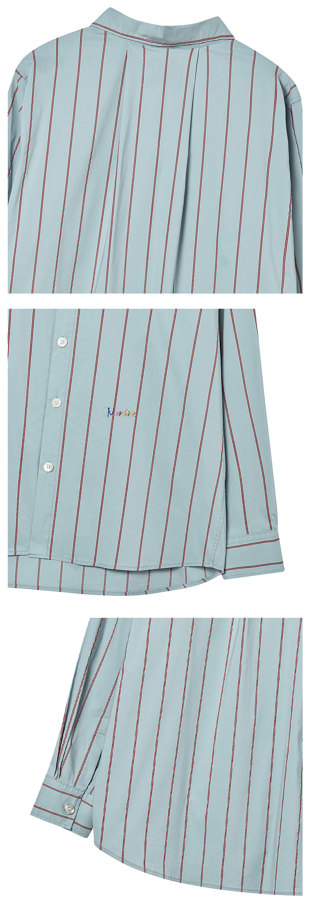 ㆍ한정 수량으로 제작된 컬렉션 라인의 셔츠 ㆍ실켓 가공한 고밀도의 코튼 혼방 소재를 사용한 스트라이프 셔츠 ㆍ위트있는 컬러 기법을 사용하여 입체적인 로고 디테일 표현 ㆍ세미 오버 핏으로 자연스러운 실루엣 연출 ㆍ천연 자개단추를 사용하여 고급스러움을 더함 ㆍ소매 부분에 클래식한 메탈 버튼 ㆍ유니섹스 상품으로 제작