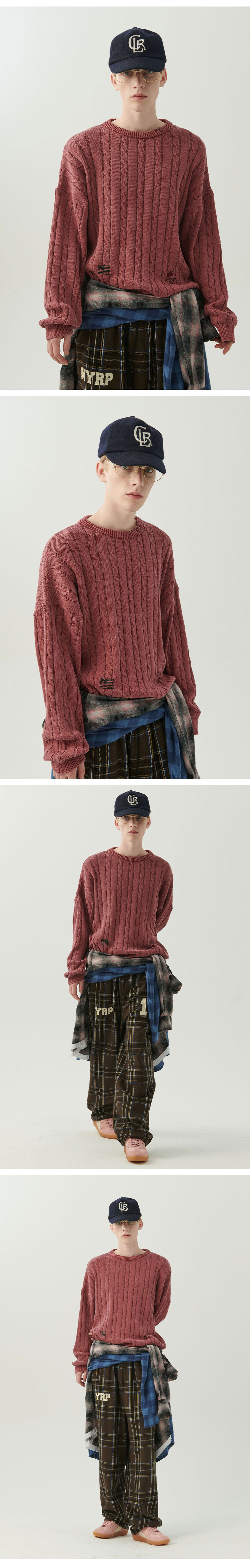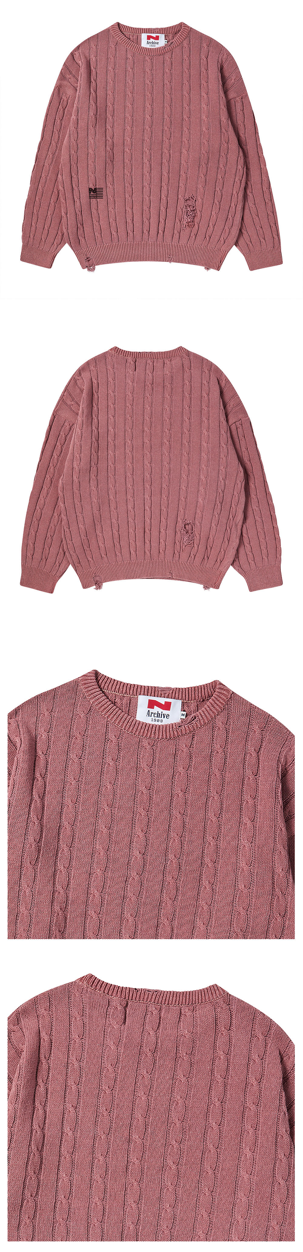 엔 아카이브 빈티지 데미지 포인트 케이블 니트 덜 핑크