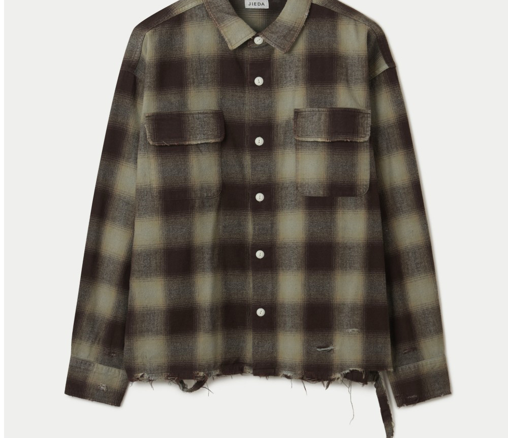 시리즈 넬 데미지 체크 셔츠 브라운