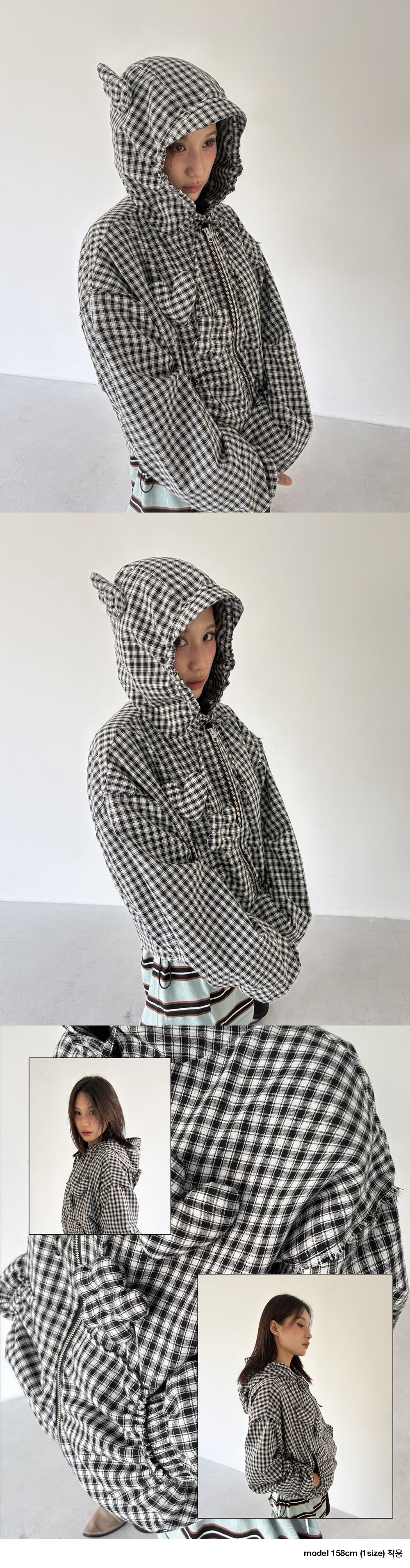 언스테디마켓 체크 브로치 후드 자켓 블랙
