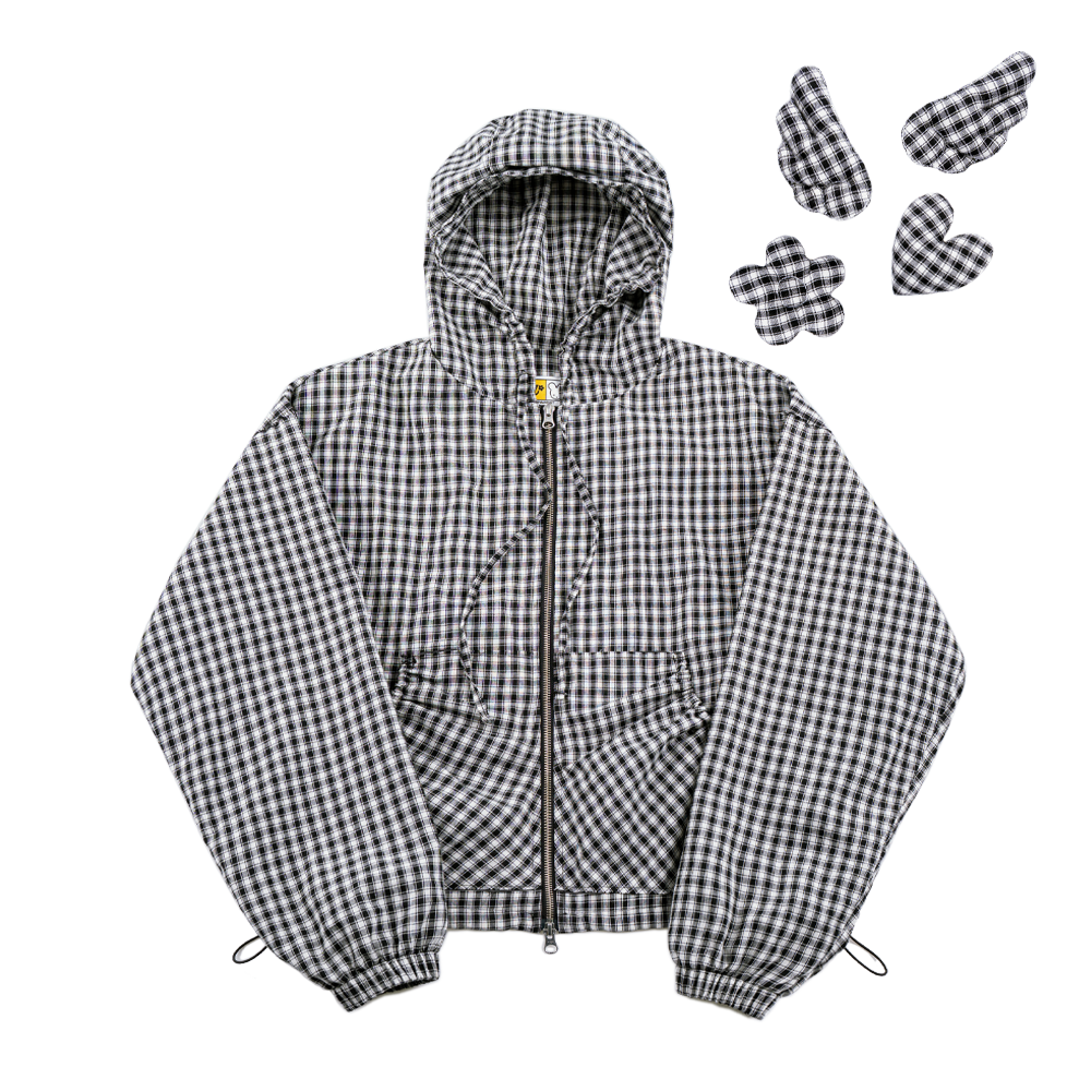 Unsteadymarket Check Brooch Hooded Jacket Black