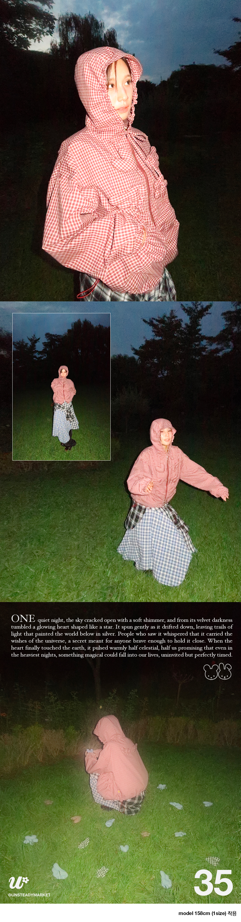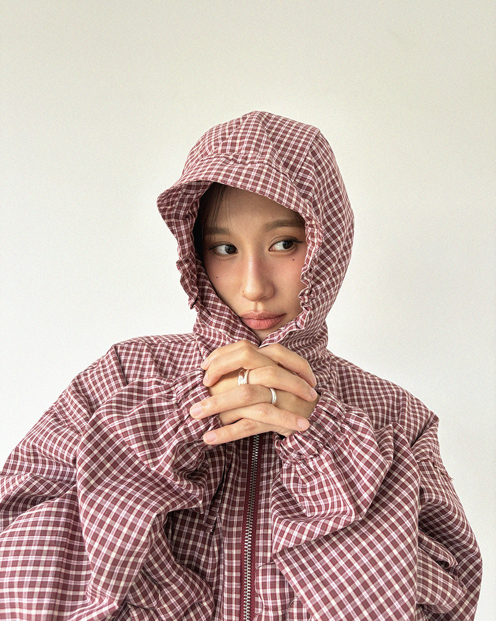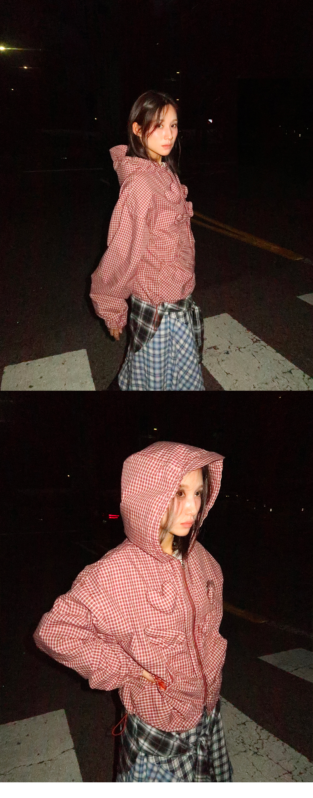 언스테디마켓 체크 브로치 후드 자켓 레드
