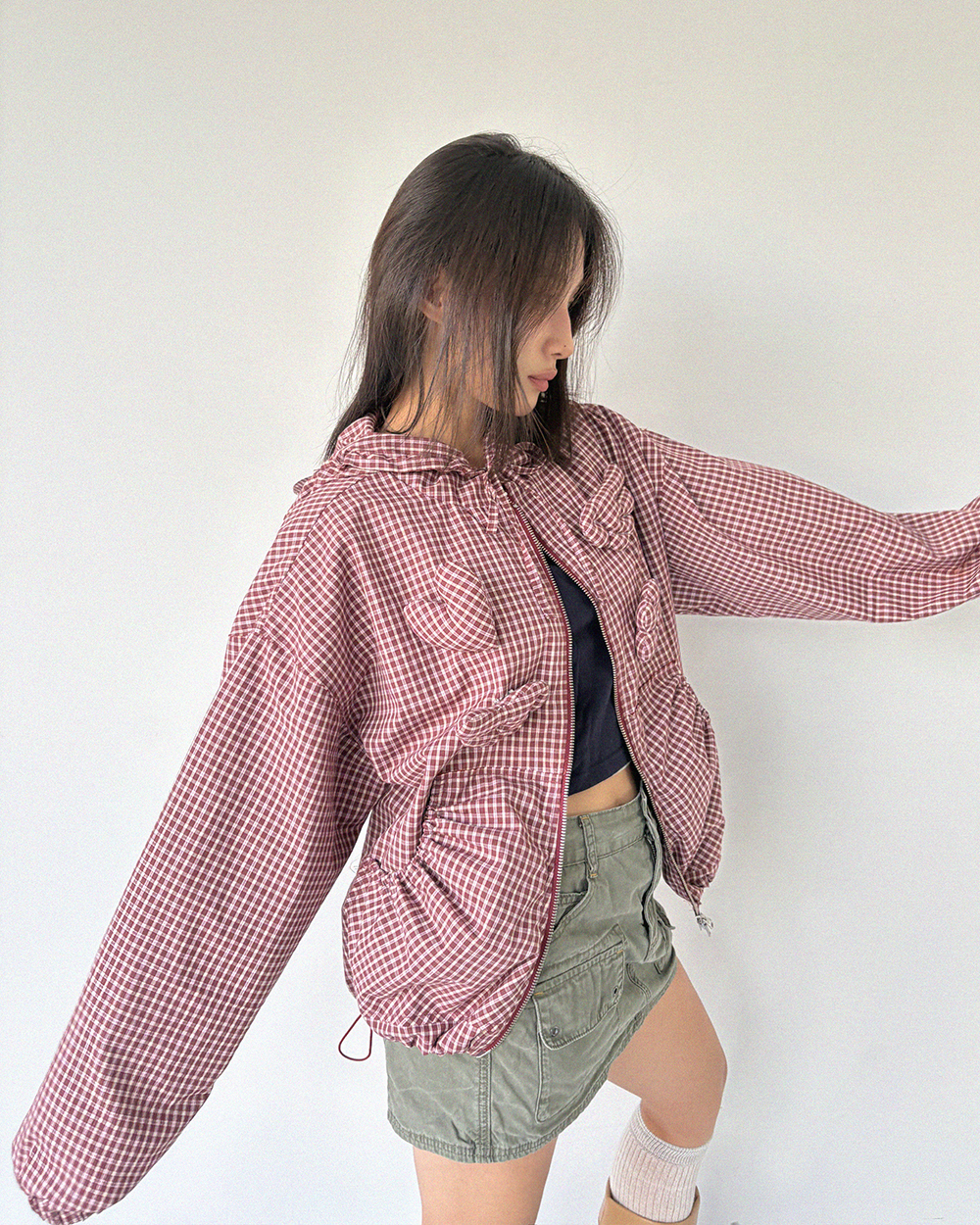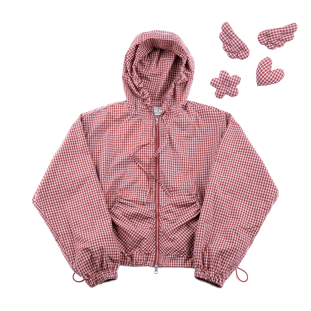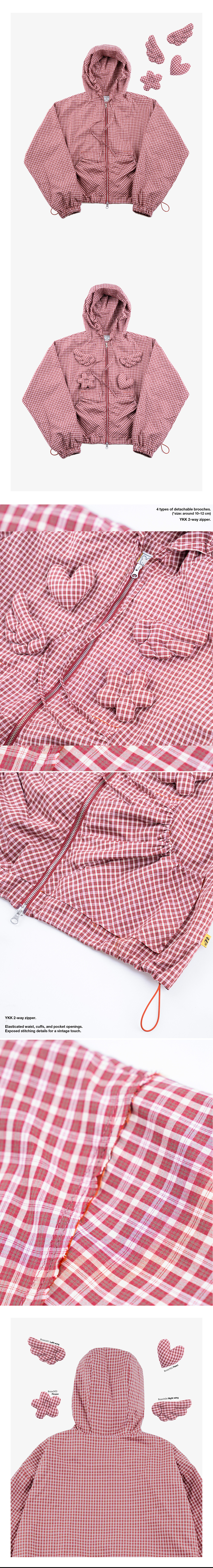 Unsteadymarket Check Brooch Hooded Jacket Red