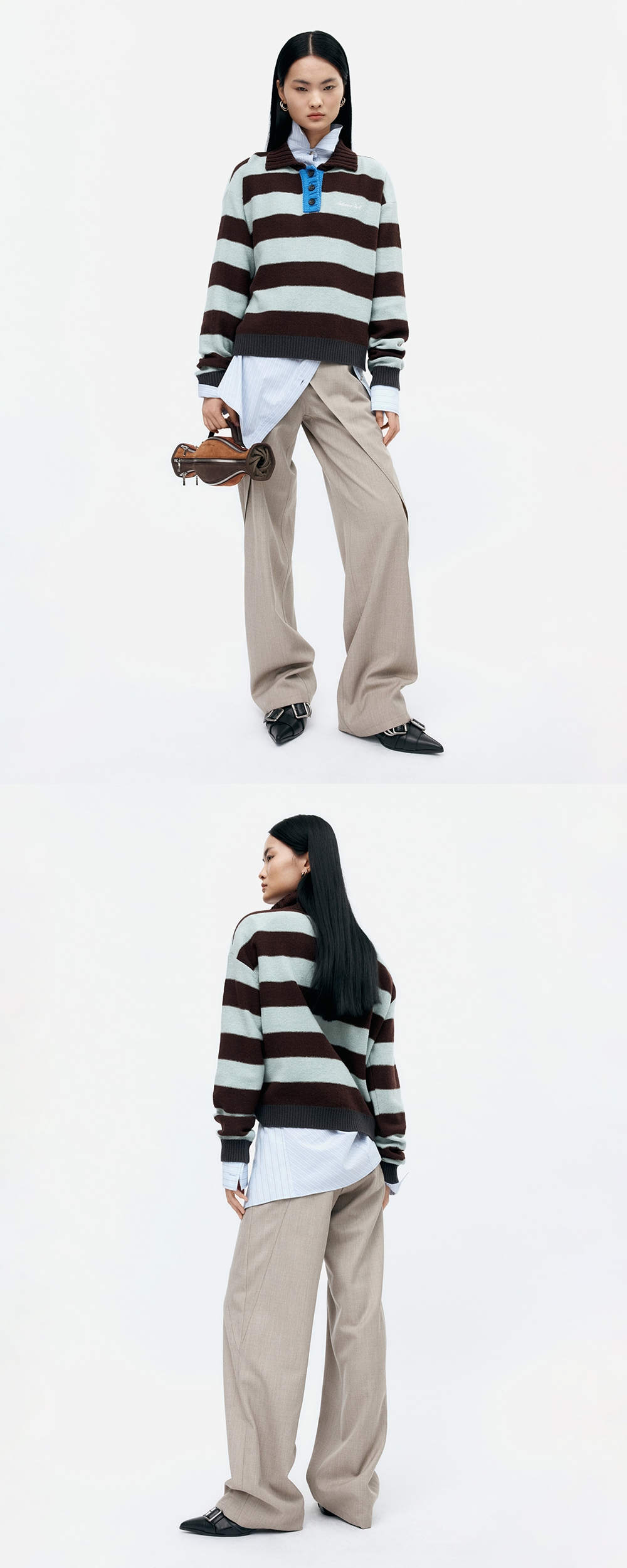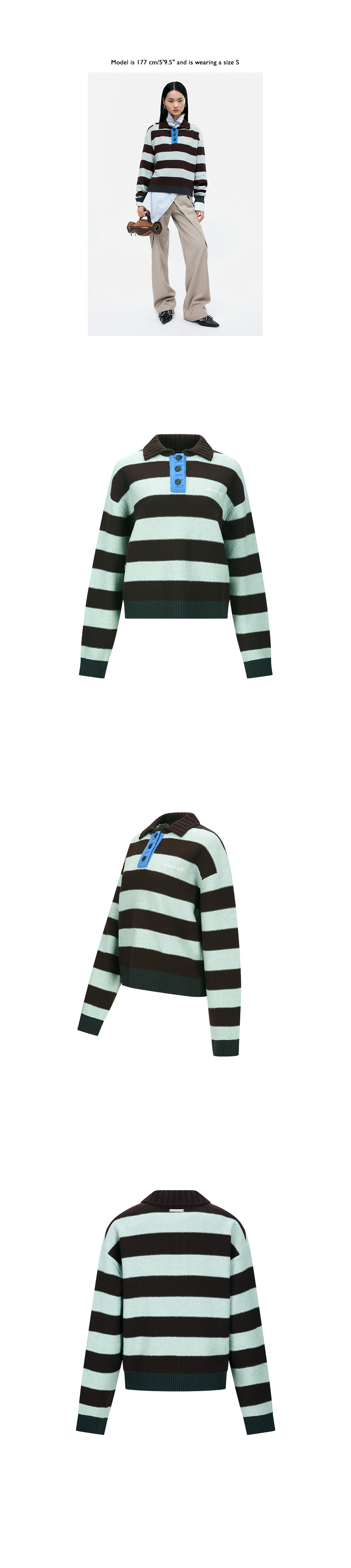 ADSB 앤더슨벨 볼드 스트라이프 칼라 스웨터 브라운 제이드
