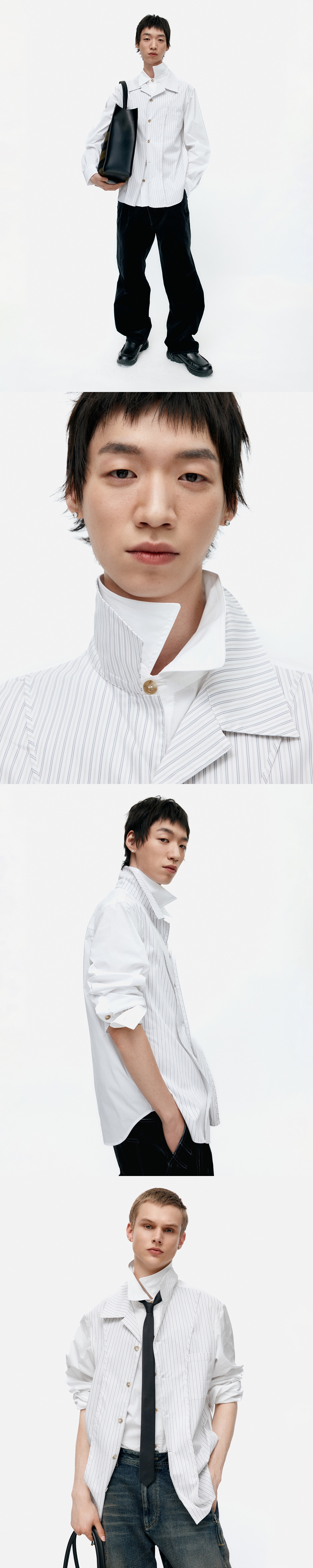 ADSB 앤더슨벨 오픈 칼라 레이어드 셔츠 화이트